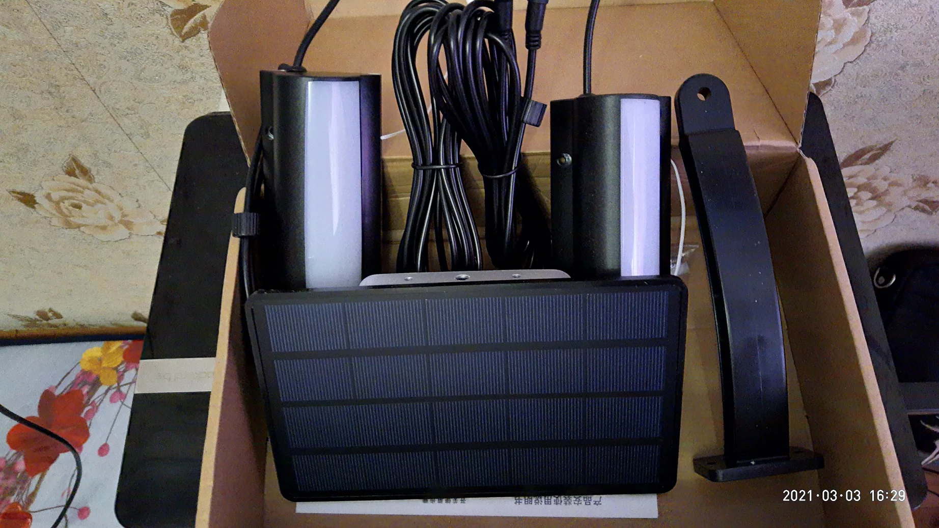 Посылка шла до 65 региона более 100 дней. Дошла в хорошем состоянии, даже коробка не помялась. Все работает. Светильник сделан качественно. Плохо, что не предусмотрена возможность зарядка от источника питания. Еще один минус - невозможность включить лампу днем пока не затемнишь солнечную батарею.