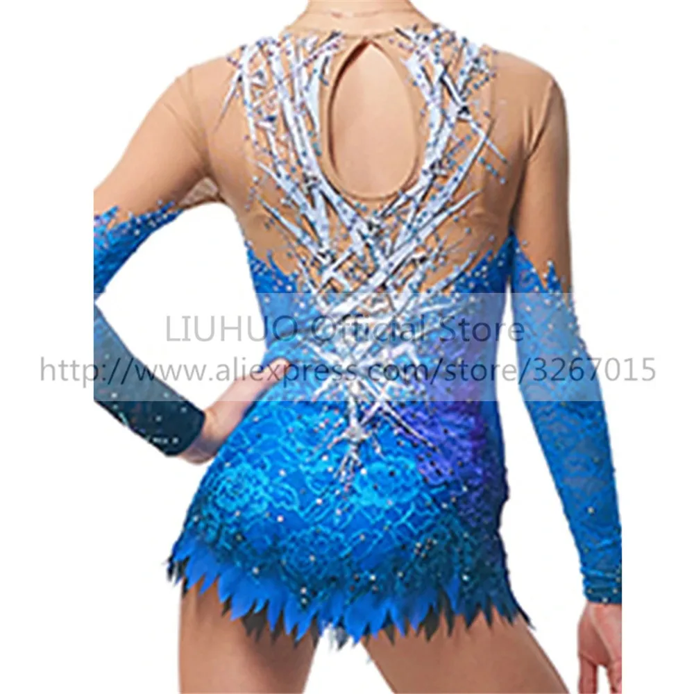 LIUHUO женский костюм для ритмической гимнастики для выступлений и соревнований по гимнастике костюм для катания на коньках Детский костюм с синими кристаллами