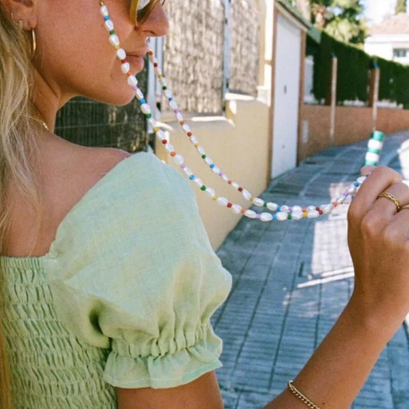 2020 разноцветные рисовые бусины, имитация очки с жемчугом, цепочка, роскошная модная женская цепочка-держатель для маски, шейный ремешок, ювелирные изделия