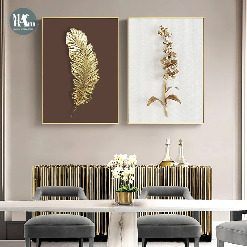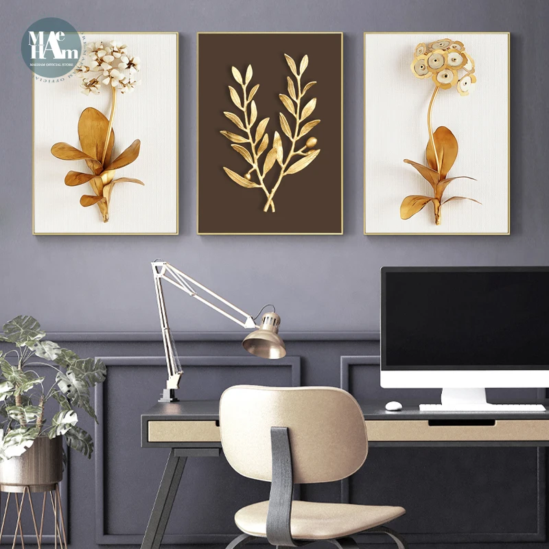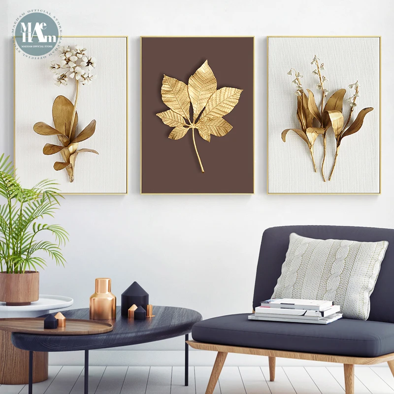 Северный золотой лист растение настенное Искусство Холст Картина золотой художественный плакат печать Настенная картина для гостиной столовой