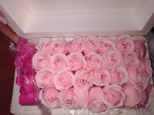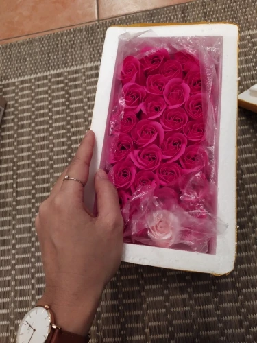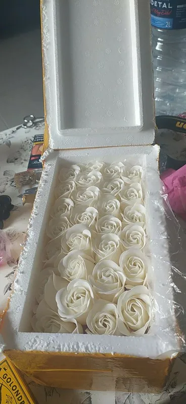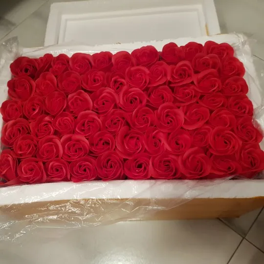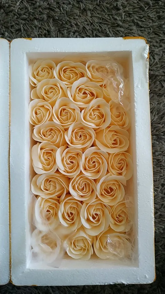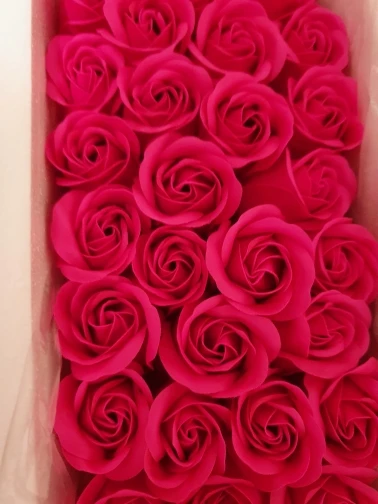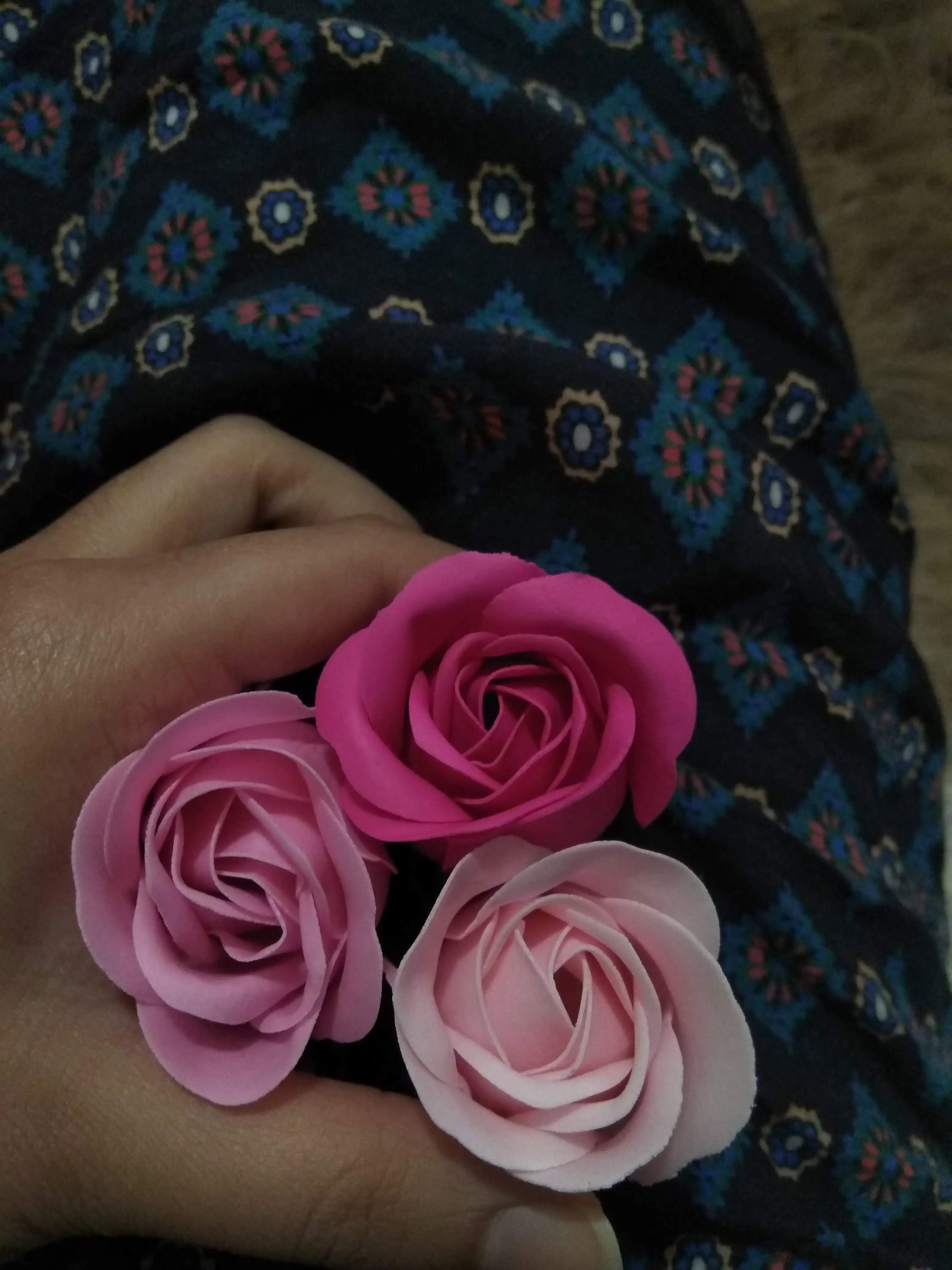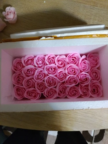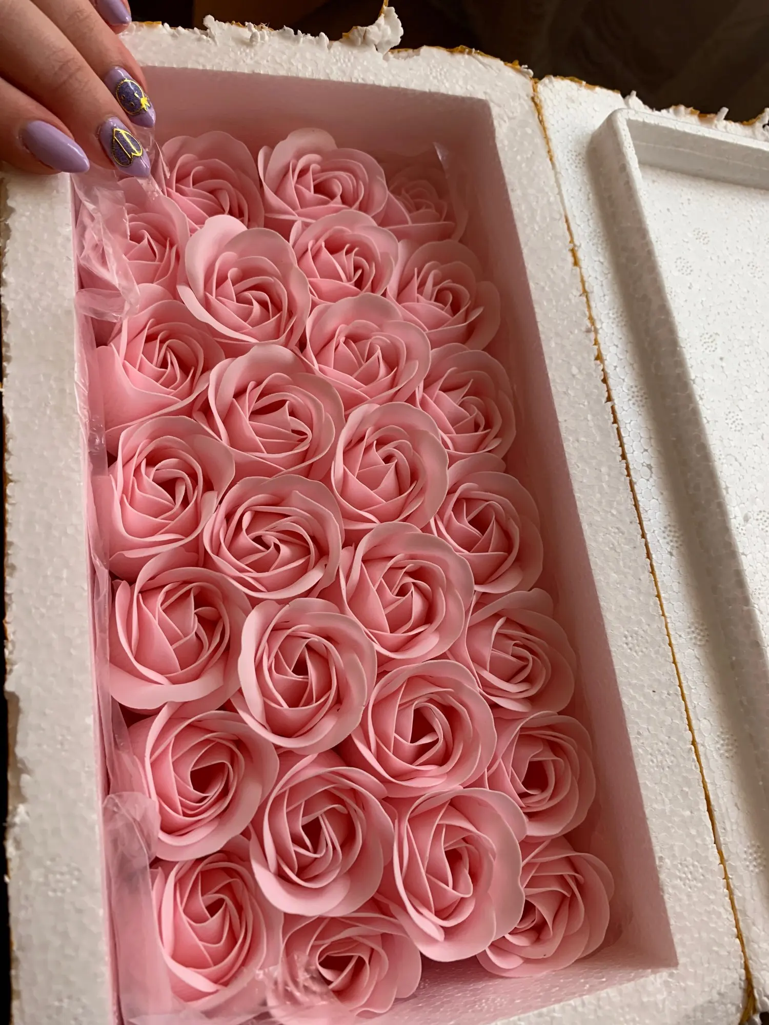 Розочки очень милые, все красивые, аккуратно упакованы, приятно пахнут розой. Похожи на настоящие, соответствуют картинке. Очень советую! Это розы из мыла - только головки.
