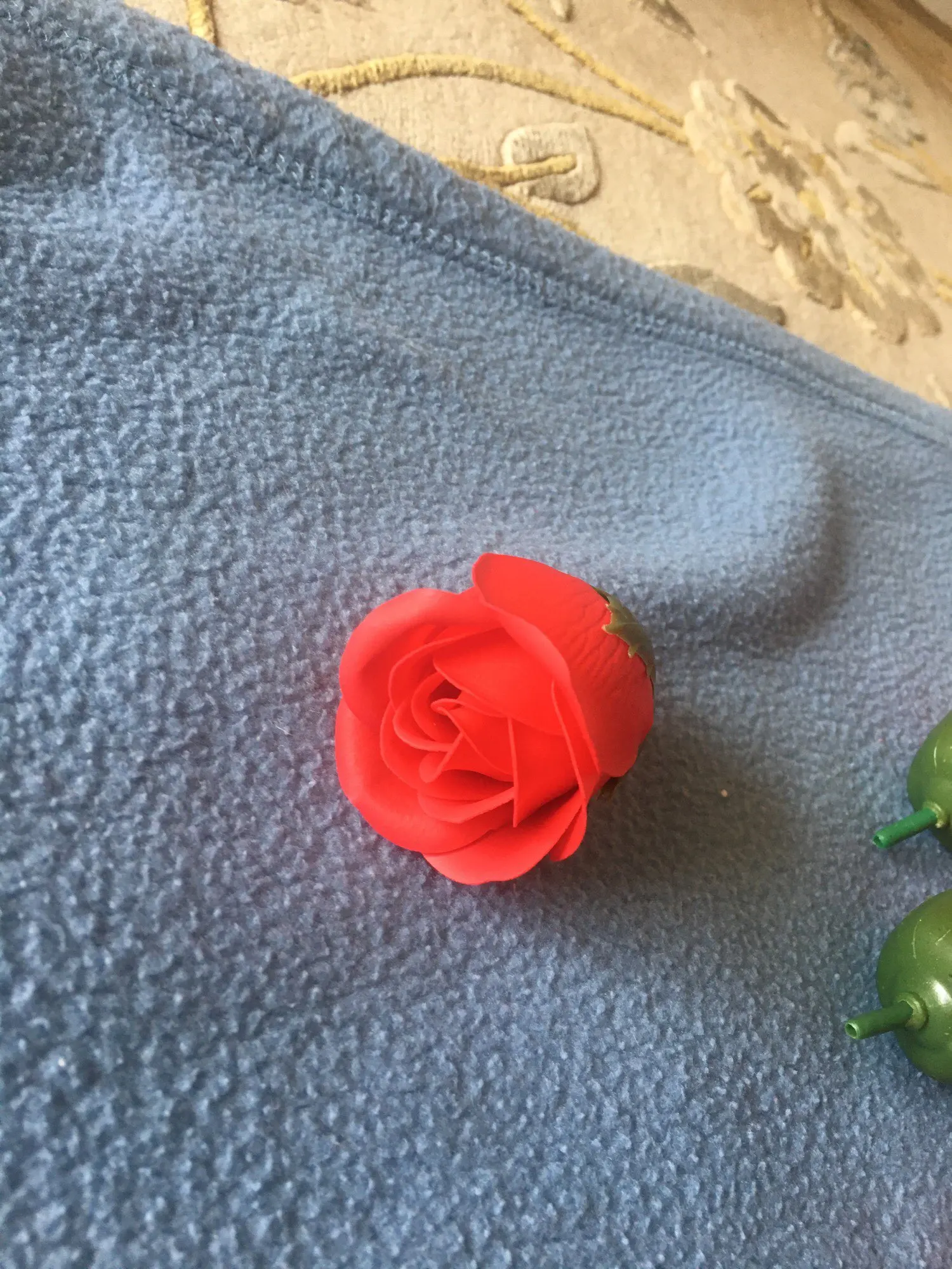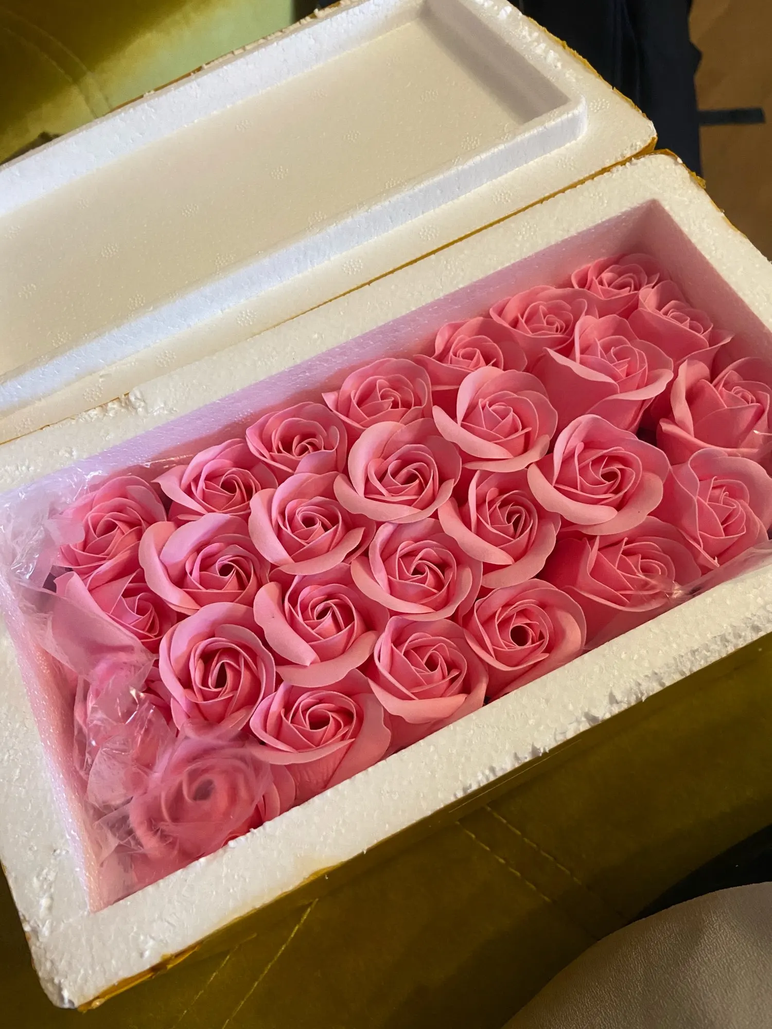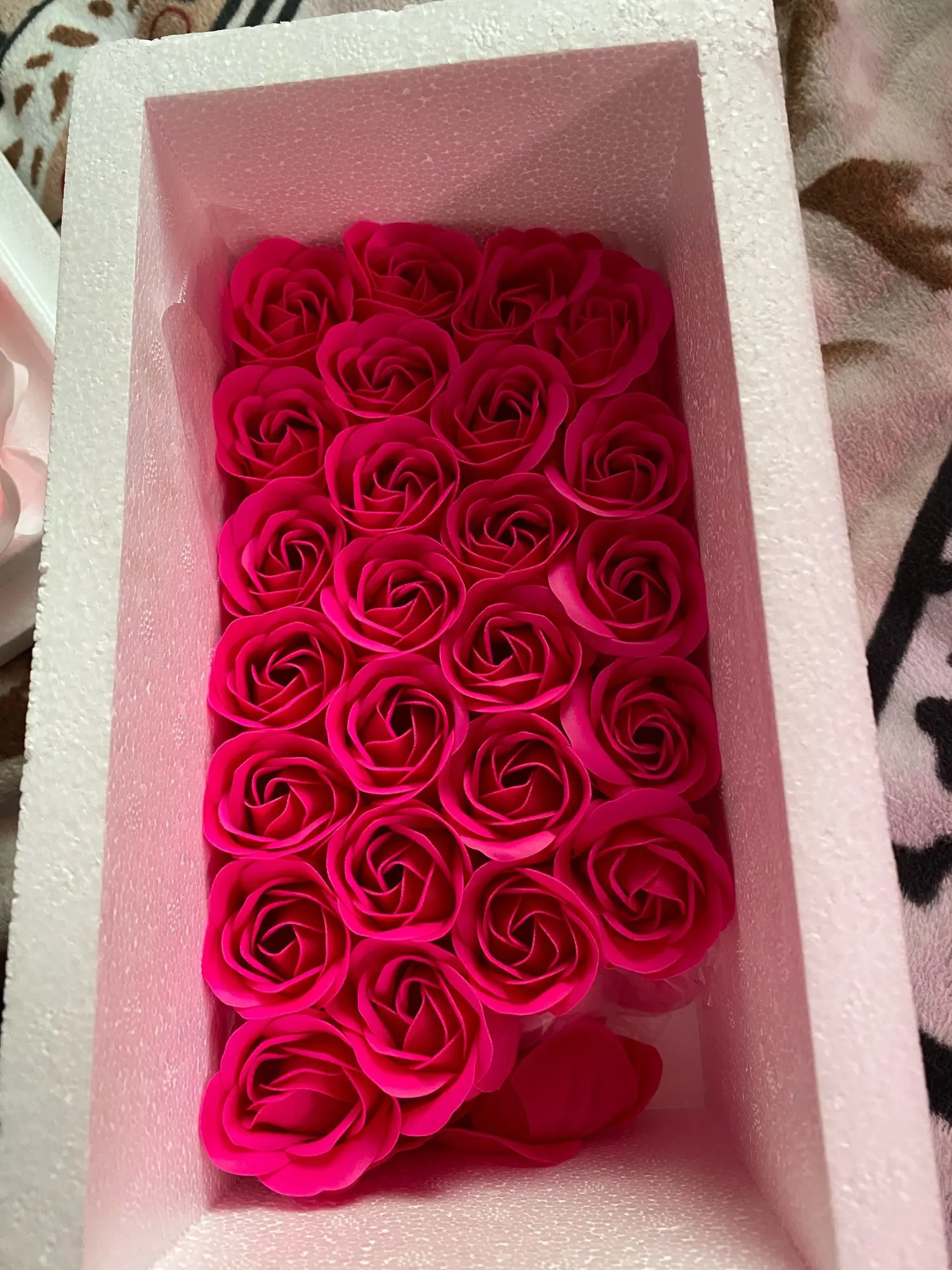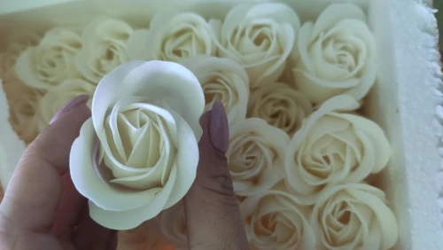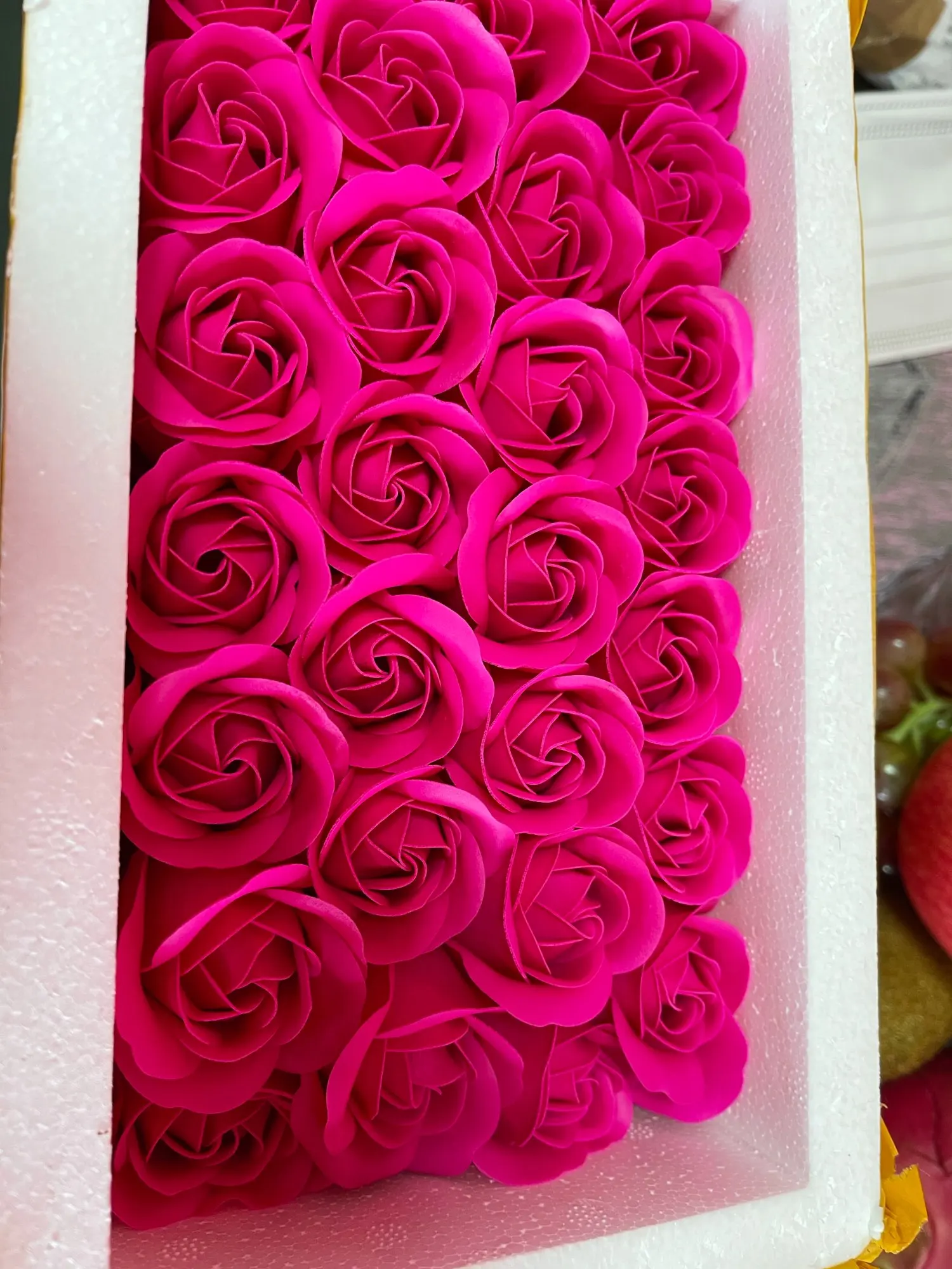 Розочки очень милые, все красивые, аккуратно упакованы, приятно пахнут розой. Похожи на настоящие, соответствуют картинке. Очень советую! Это розы из мыла - только головки.