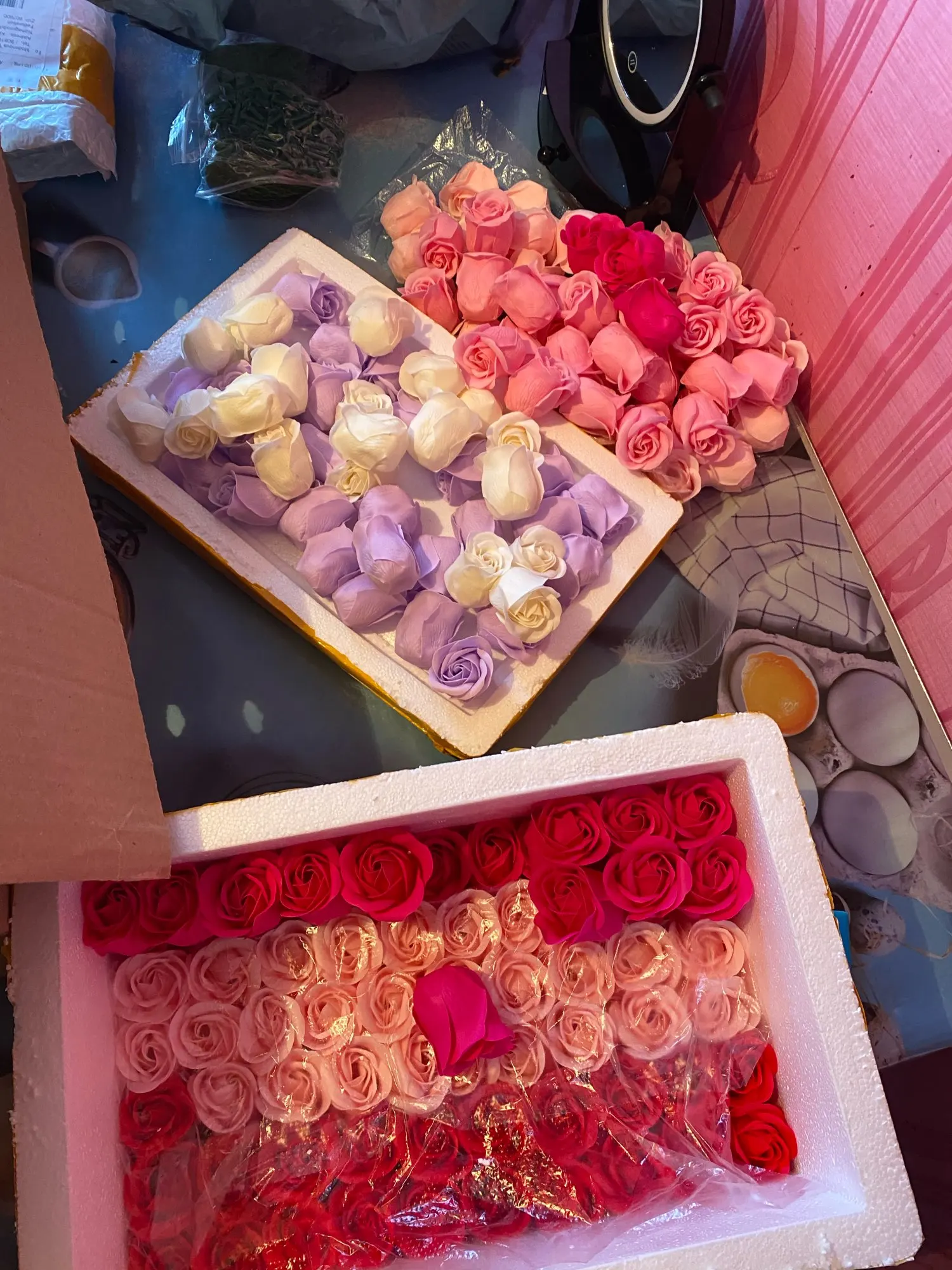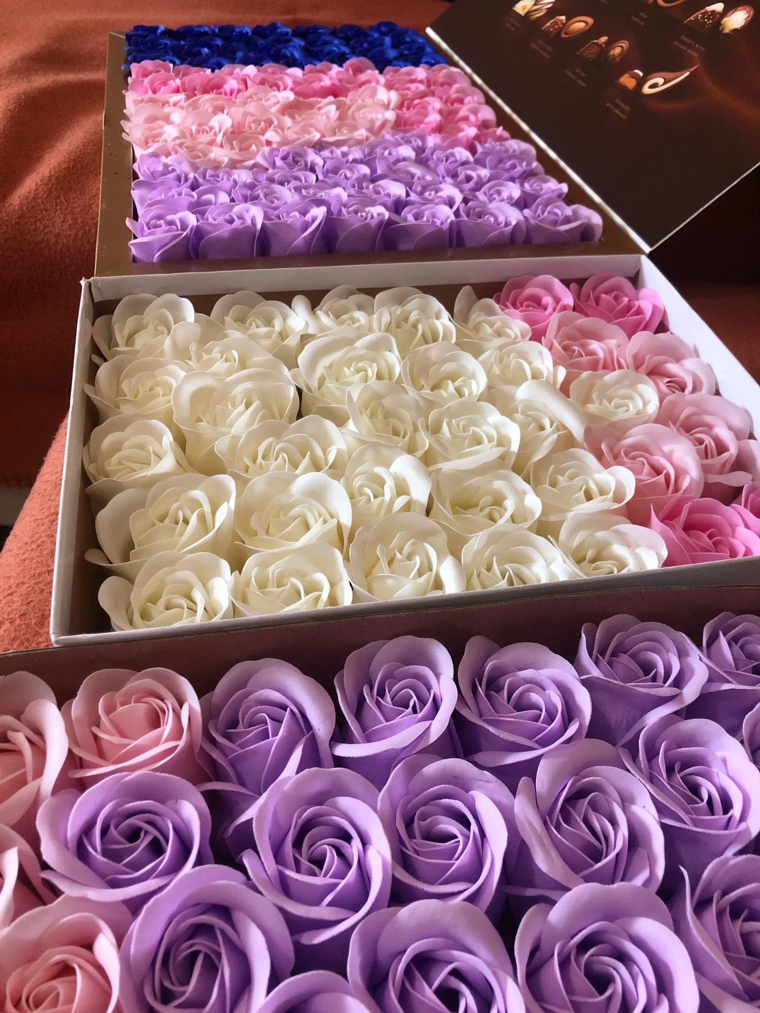 Товарищи, ставлю 1000 звёзд продавцу, так как только благодаря его упаковке заказ доехал в целости, только нижний ряд цветов пострадал . Думала цветы будут хрупкие, но они похожи на мягкий пластик, а не на сухое мыло, не лопаются и не ломаются, цвета яркие и насыщенные, рекомендую ну а что до работников почты♀️