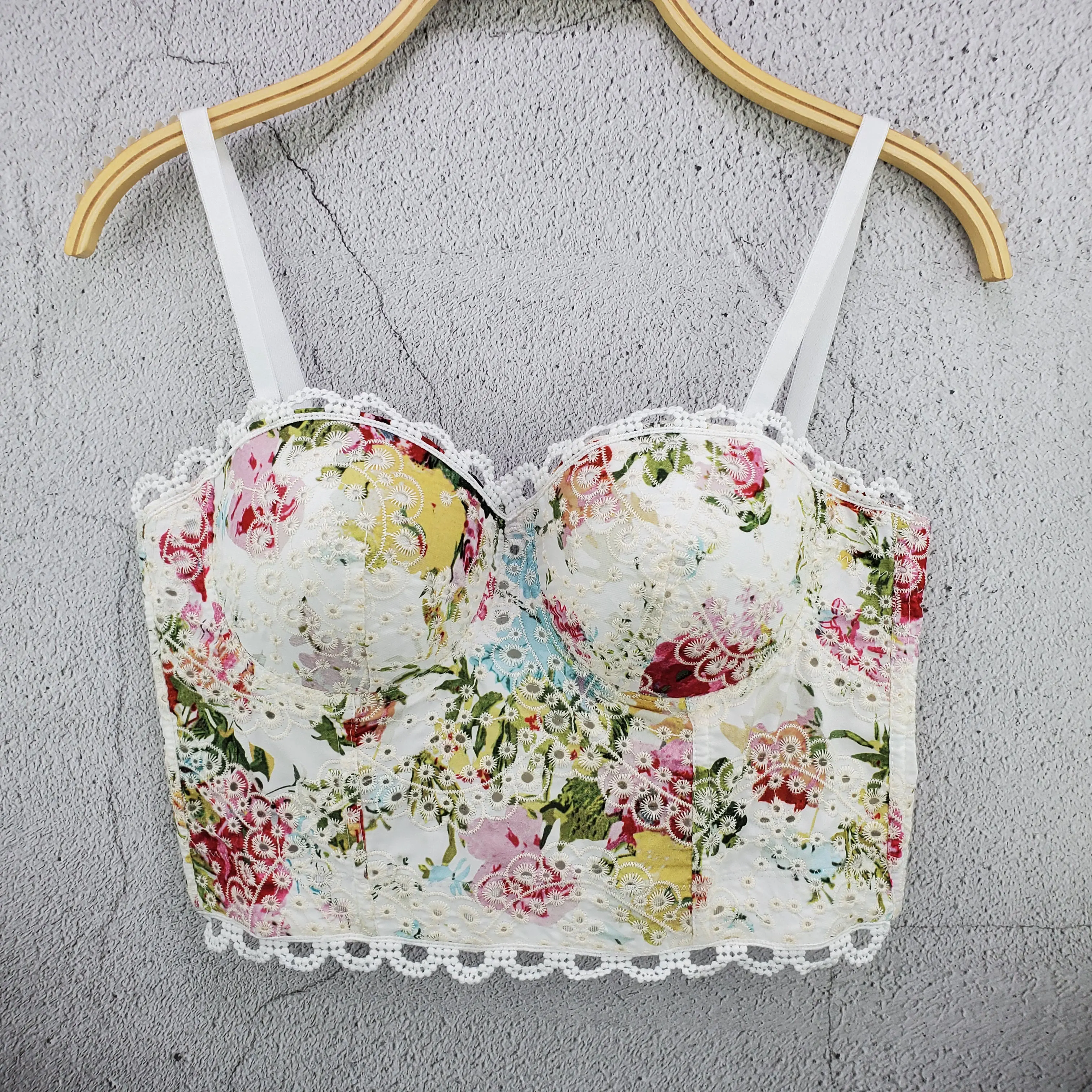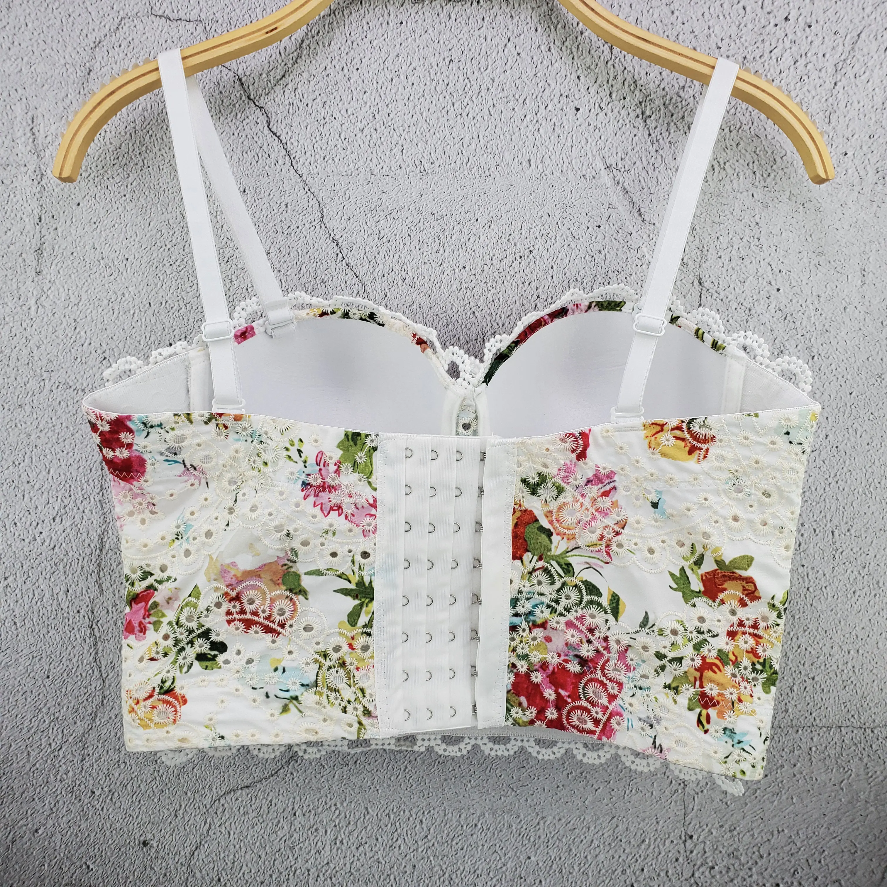 Винтаж цветок Сексуальная майка Для Женщин Кружевной Корсет коротки...