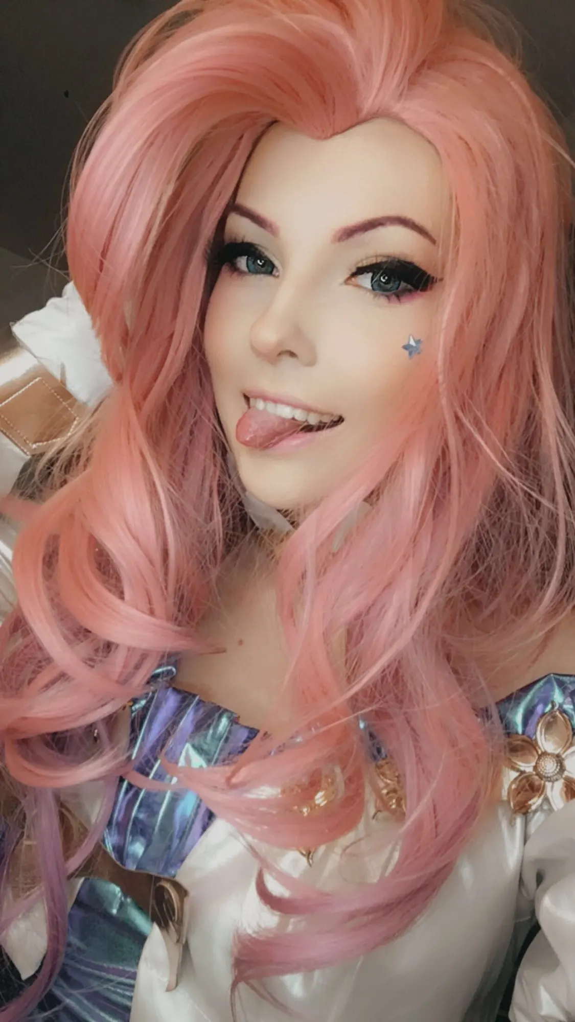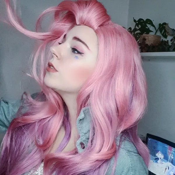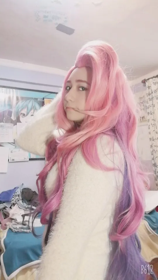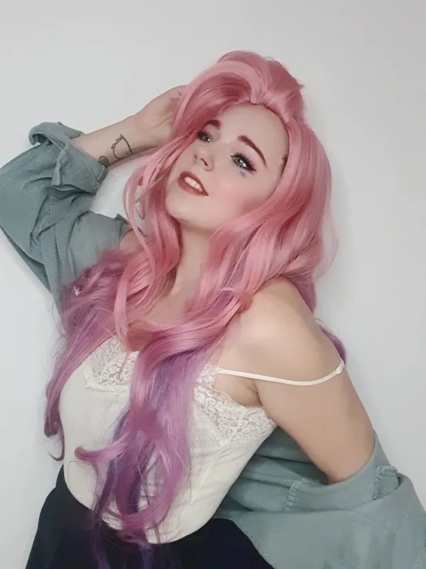 Парик для косплея DIOCOS, LoL, KDA Seraphine, женский, распущенные волны, прямые, розовые, смешанные, фиолетовые, термостойкие синтетические волосы