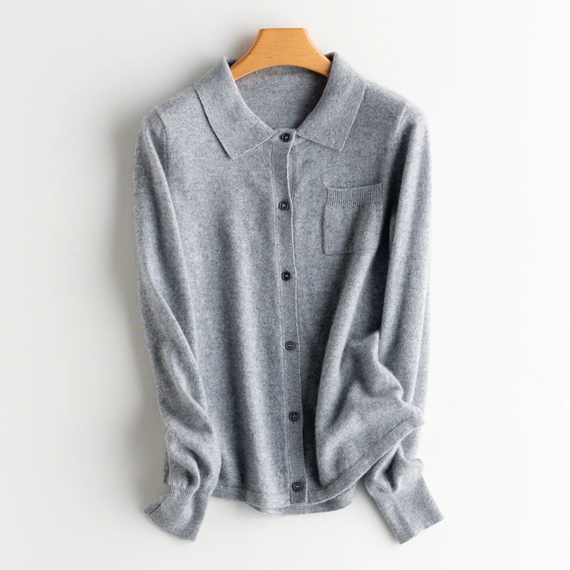 Горячая распродажа Женские 100% кашемировые женские эластичные однотонные трикотажные кардиганы новые женские топы с отложным воротником осень-зима