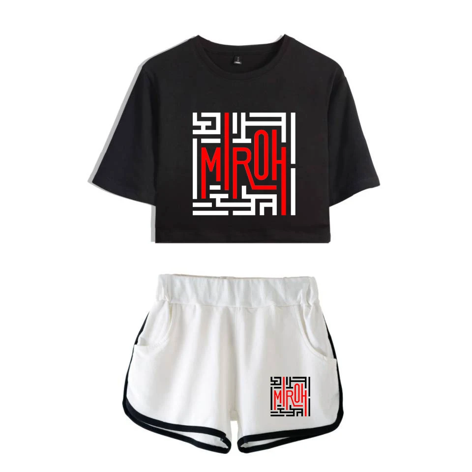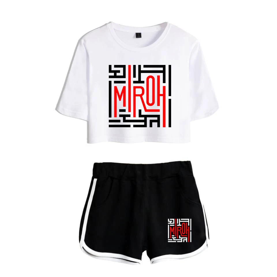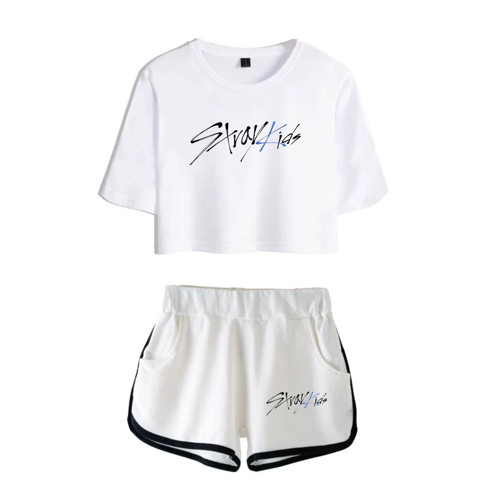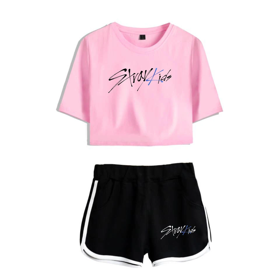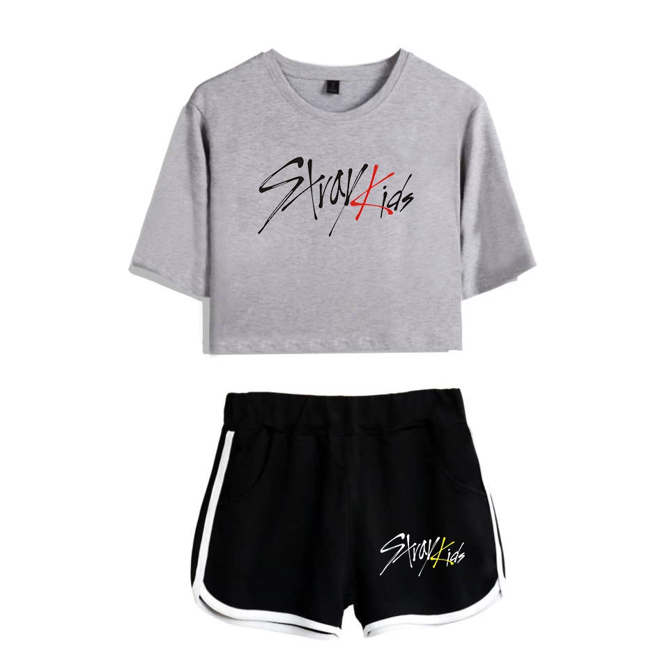 Модный женский комплект из двух предметов с принтом в виде пупка, футболка с принтом в стиле K-POP, укороченные штаны, летняя футболка с принтом в виде пупка, комплекты для отдыха для девочек