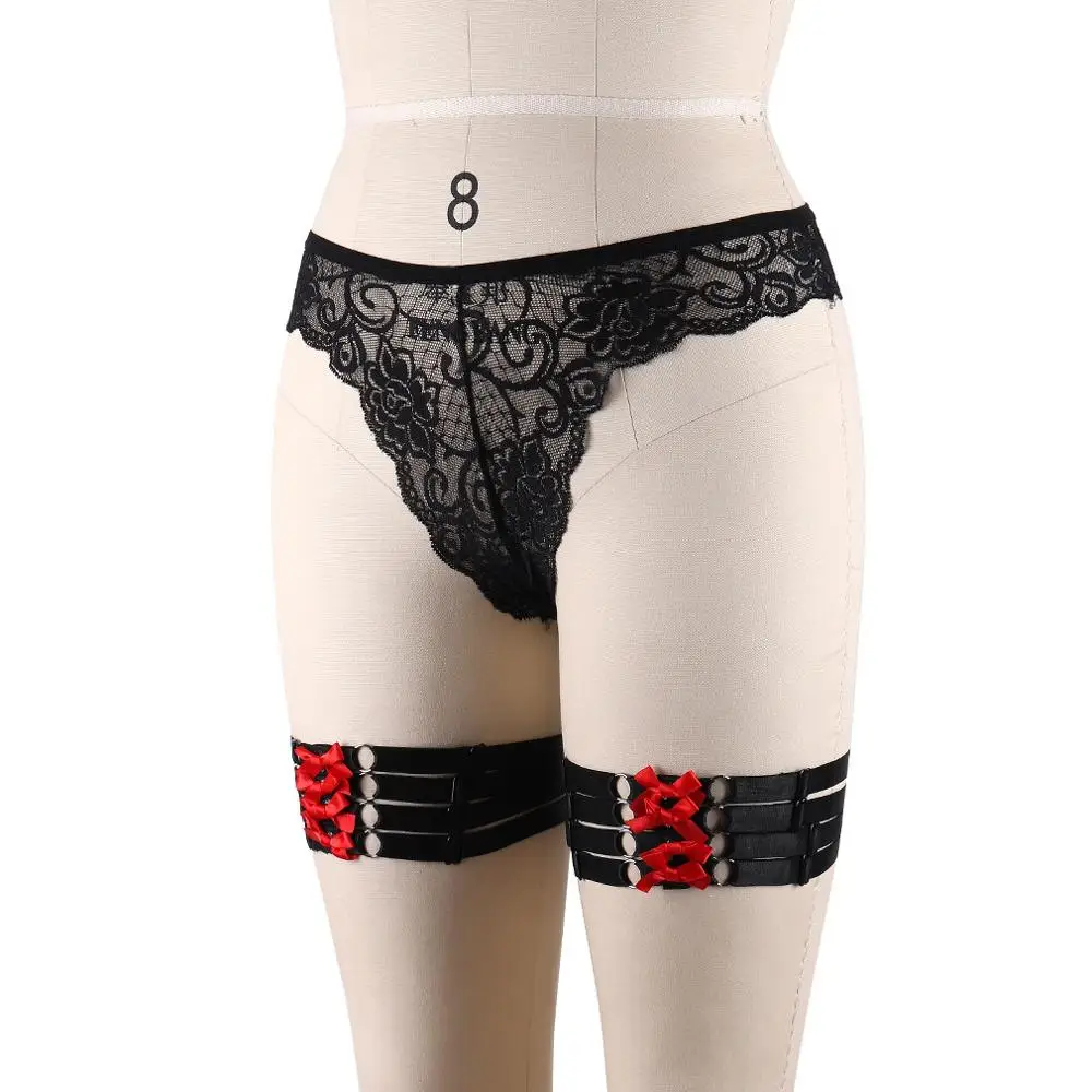 Пояс для чулок в стиле панк, красная портупея с бантом на талию, пикантный бандаж для полярного танца, чулки на бедро