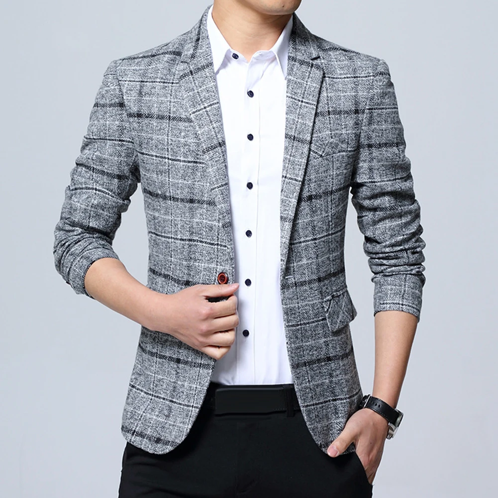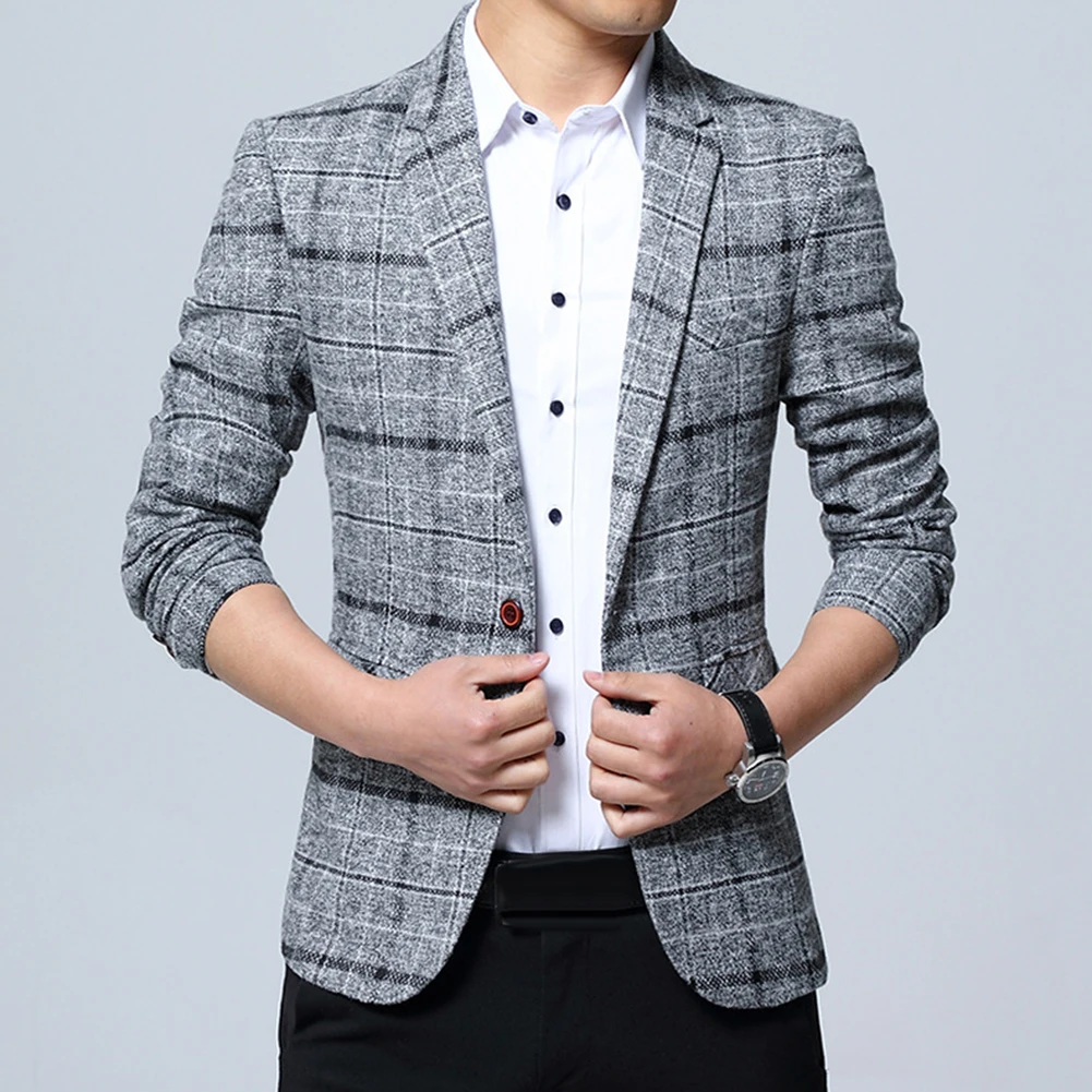Модный мужской пиджак в клетку с отворотом, приталенный пиджак на одной пуговице, деловой костюм в клетку, классический дизайн, легко сочетается с