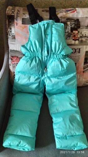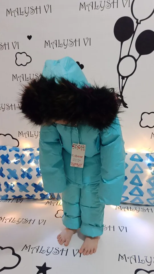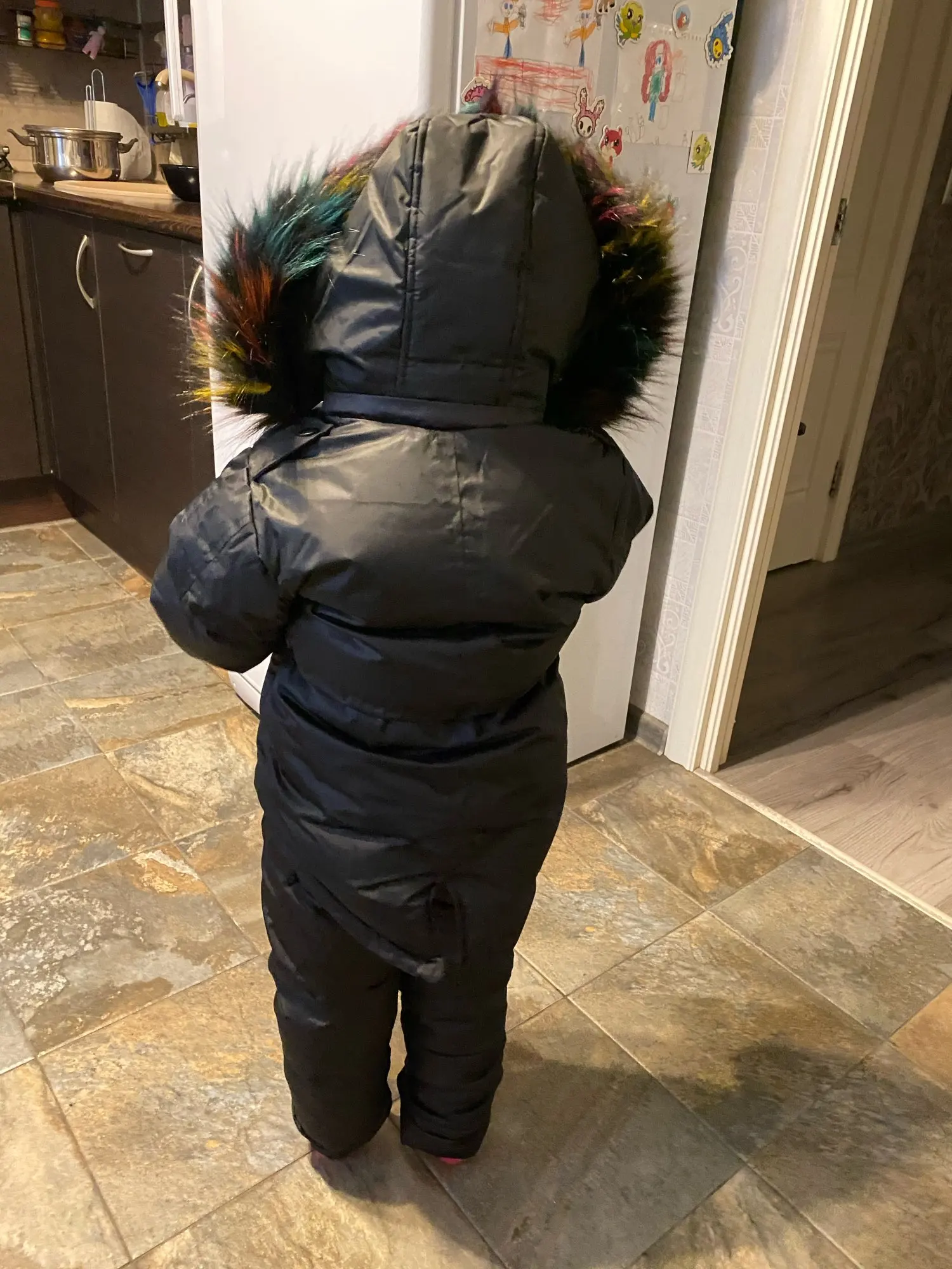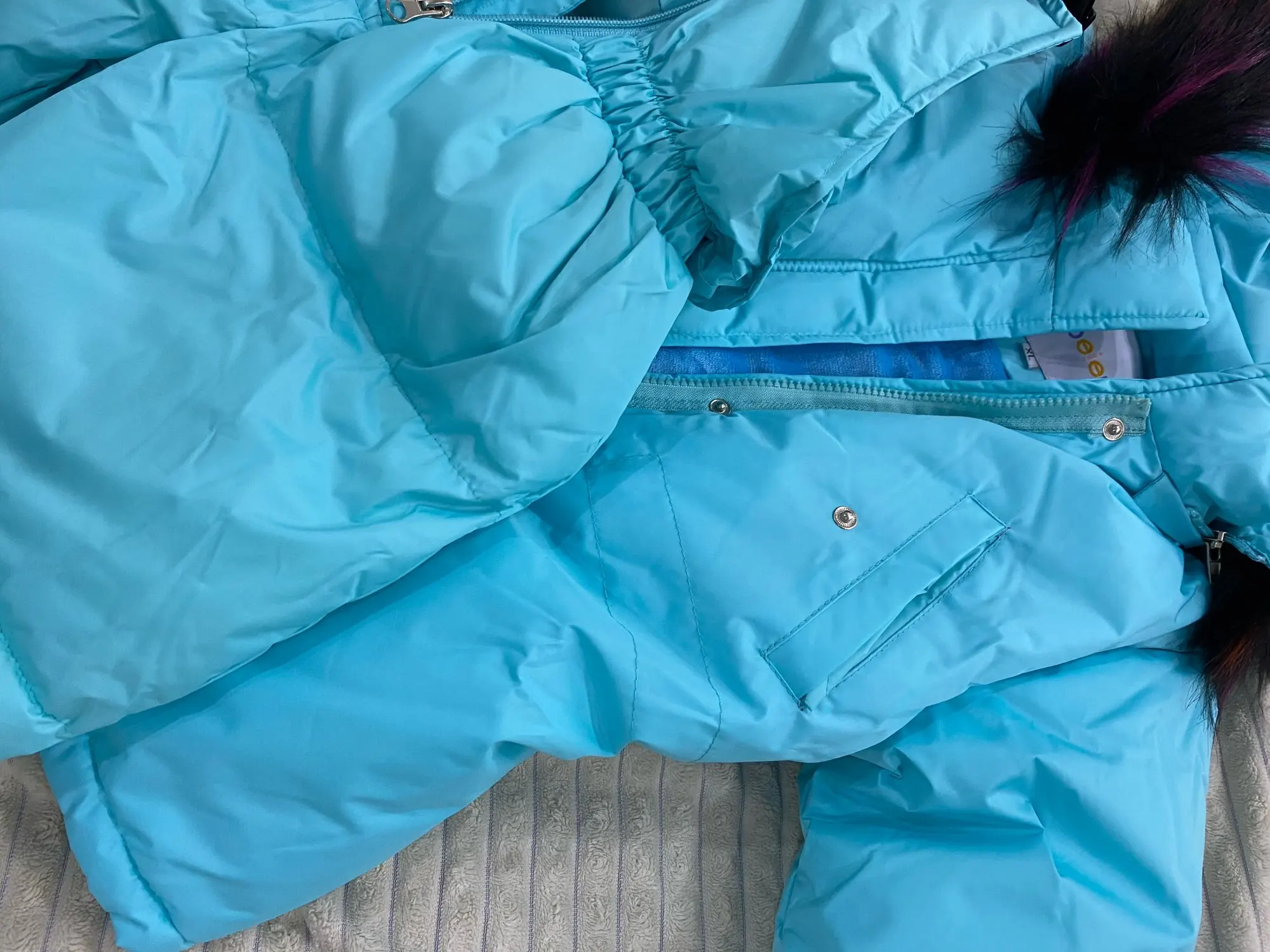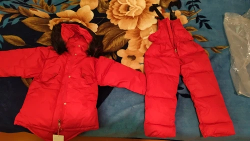 Куртка и комбинезон мне понравились! Верхний материал очень плотный! По качеству претензий нет, есть мелкие недочёты, но абсолютно не влияют на использование одежды. Цвет очень красивый, может для кого-то и покажется не практичным. Мех на капюшоне просто отличный! Размер я брала на следующий зимний сезон. Хотя, если подвернуть штаны и рукава в куртке, то можно и сейчас носить. Ребенку 1 год 9 месяцев, ростом где-то 90 см. ОГ 53. Мы остались очень довольны комплектом! Посылка пришла за два месяца. Спасибо продавцу!