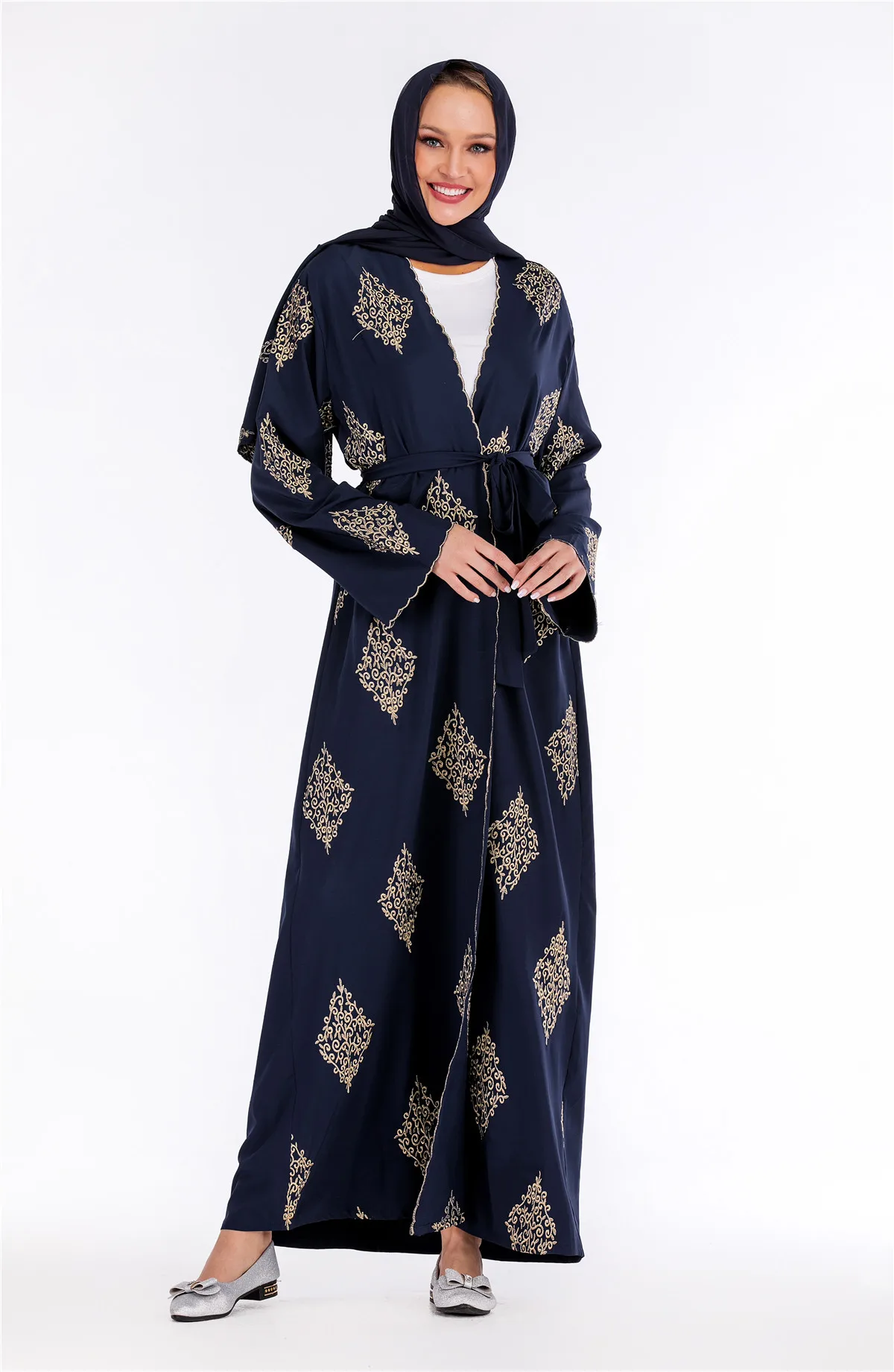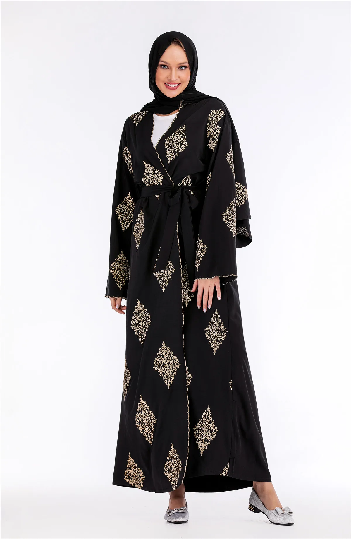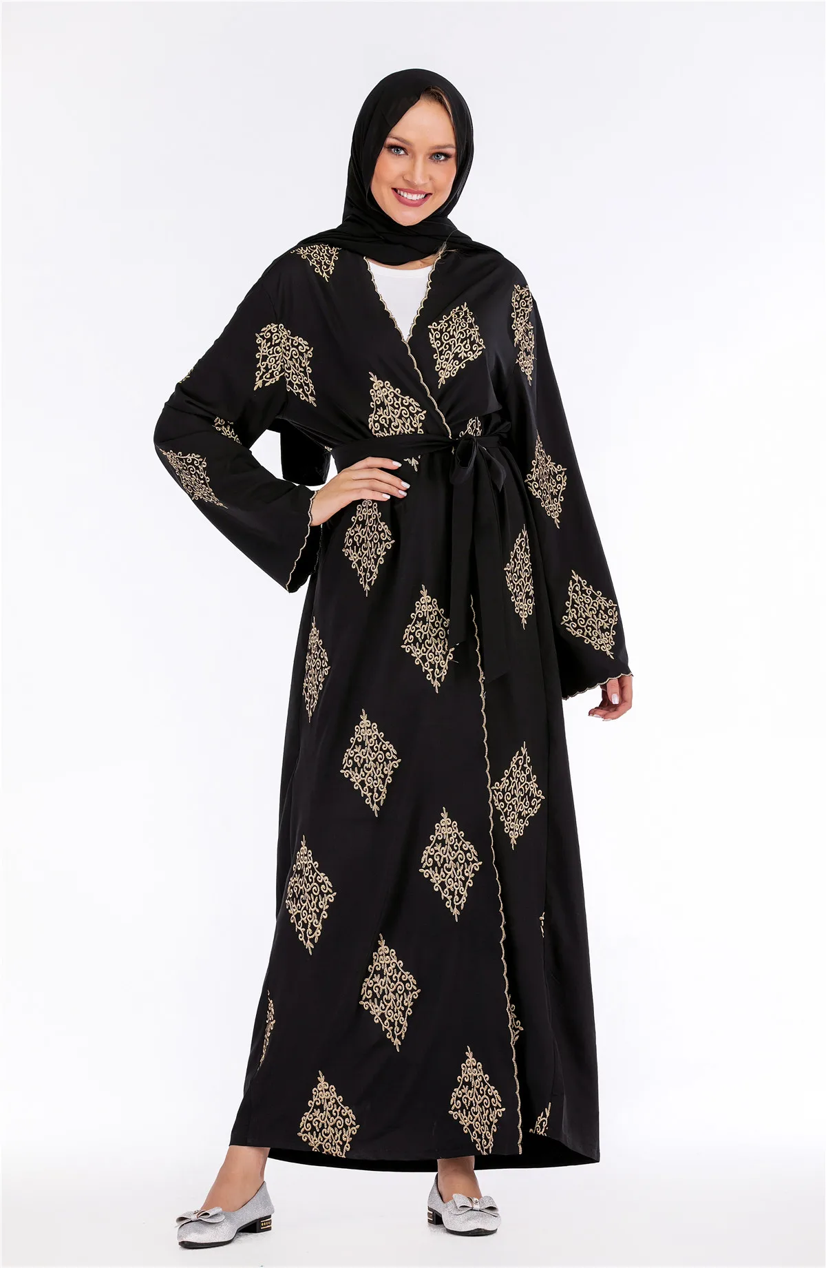 Женский длинный кардиган, с этнической вышивкой, турецкий кафтан, исламский, мусульманский, Рамадан, открытая передняя часть, абайя, Дубай