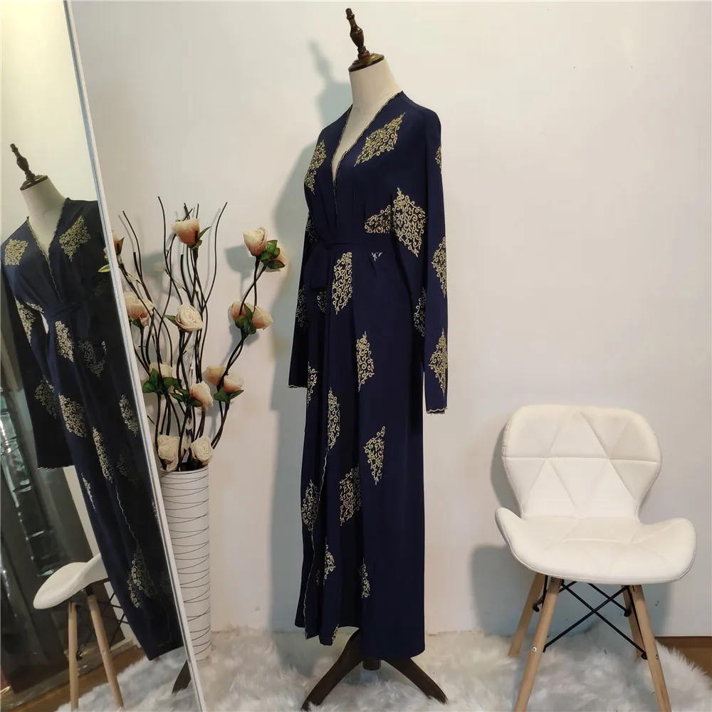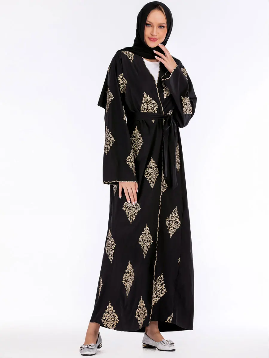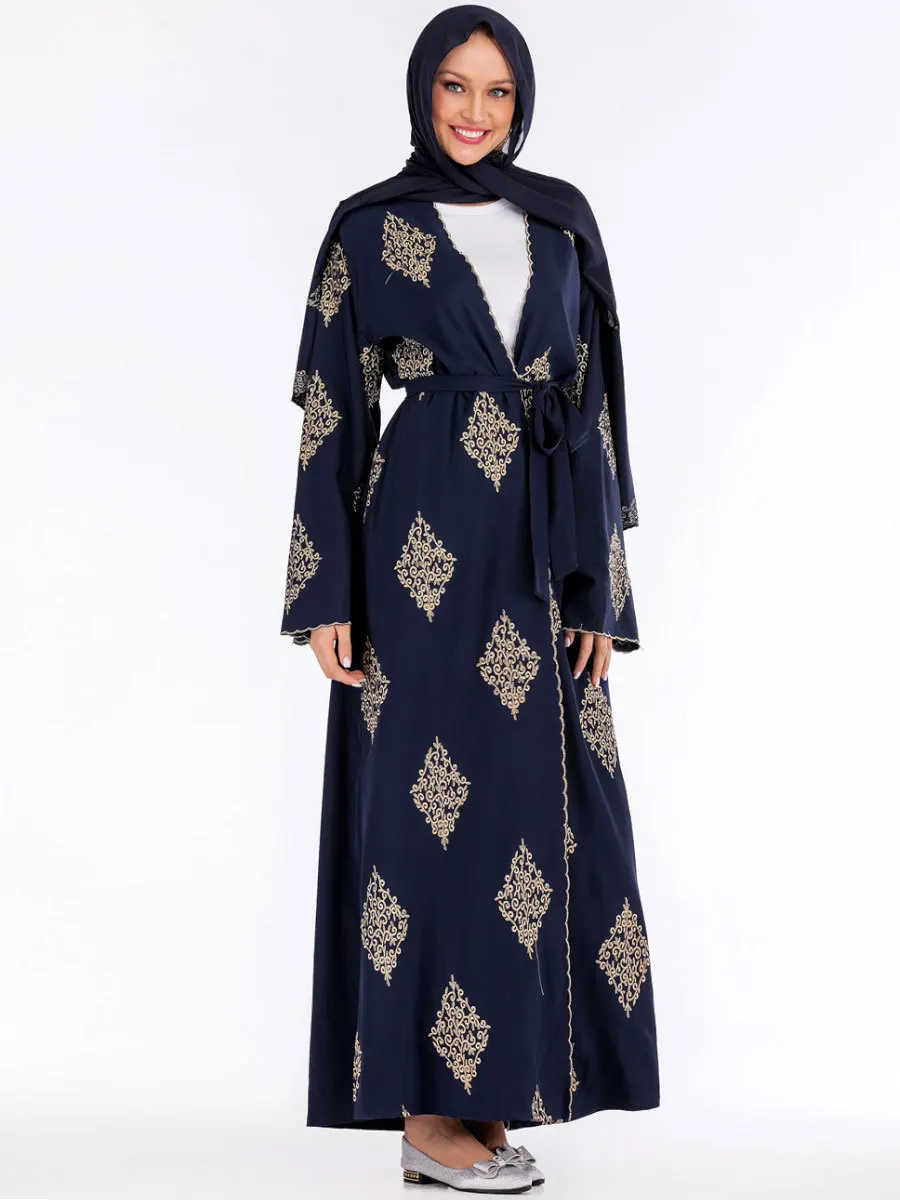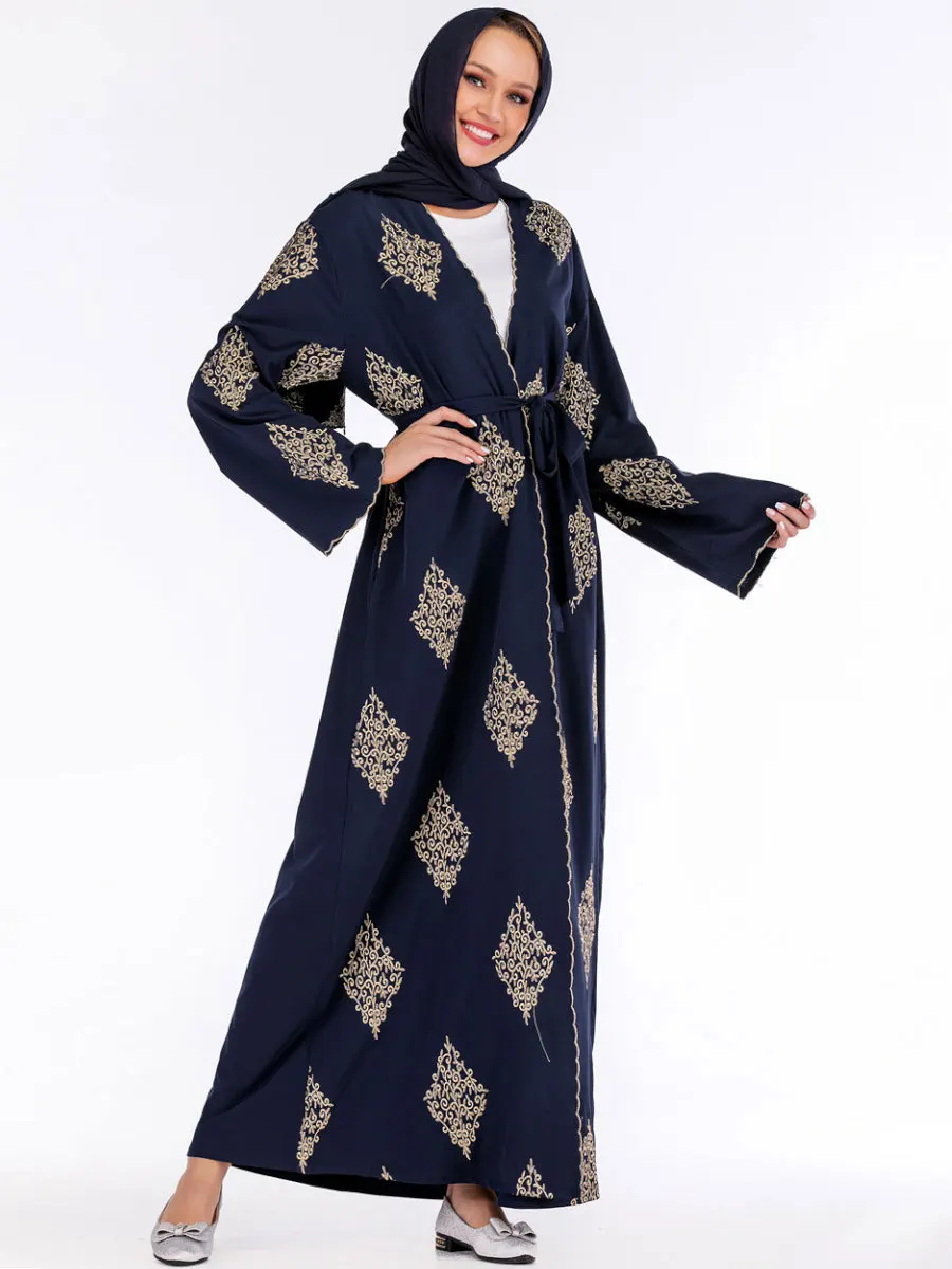 Женский длинный кардиган, с этнической вышивкой, турецкий кафтан, исламский, мусульманский, Рамадан, открытая передняя часть, абайя, Дубай