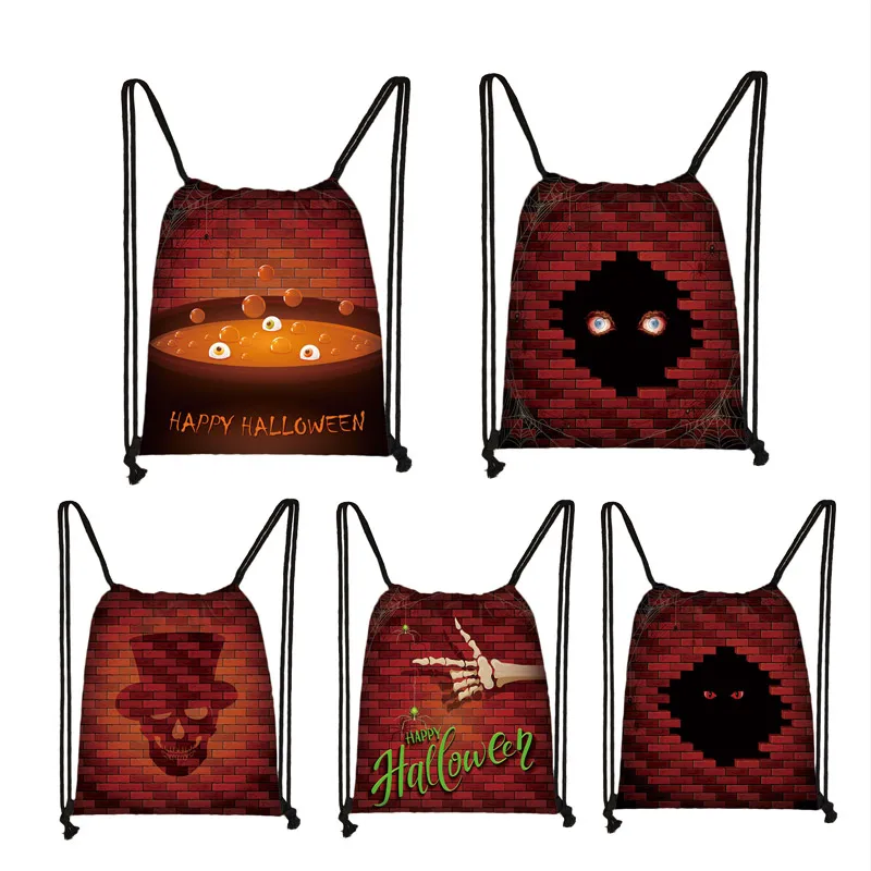 Тень Тыква крест на кирпичной стене Хэллоуин мешок шнурка Дети гусиные сумки пакет для конфет на Хэллоуин подарочные сумки с ручками