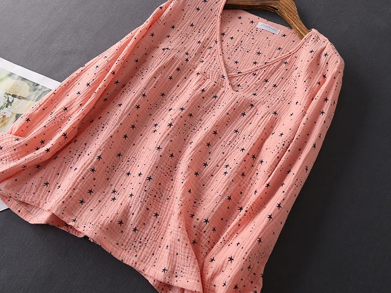 Женский пижамный комплект в японском стиле на весну и осень из 100% хлопка, брюки с длинными рукавами, удобная домашняя одежда, пижамный комплект для женщин