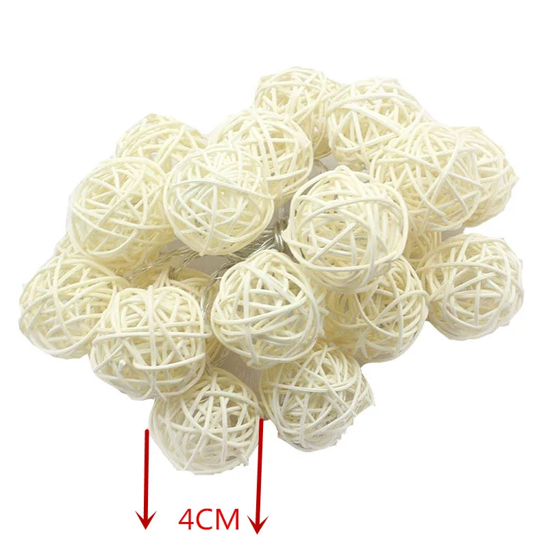 Светодиодная гирлянда с шариками из ротанга, 5 м, 20 светодиодов