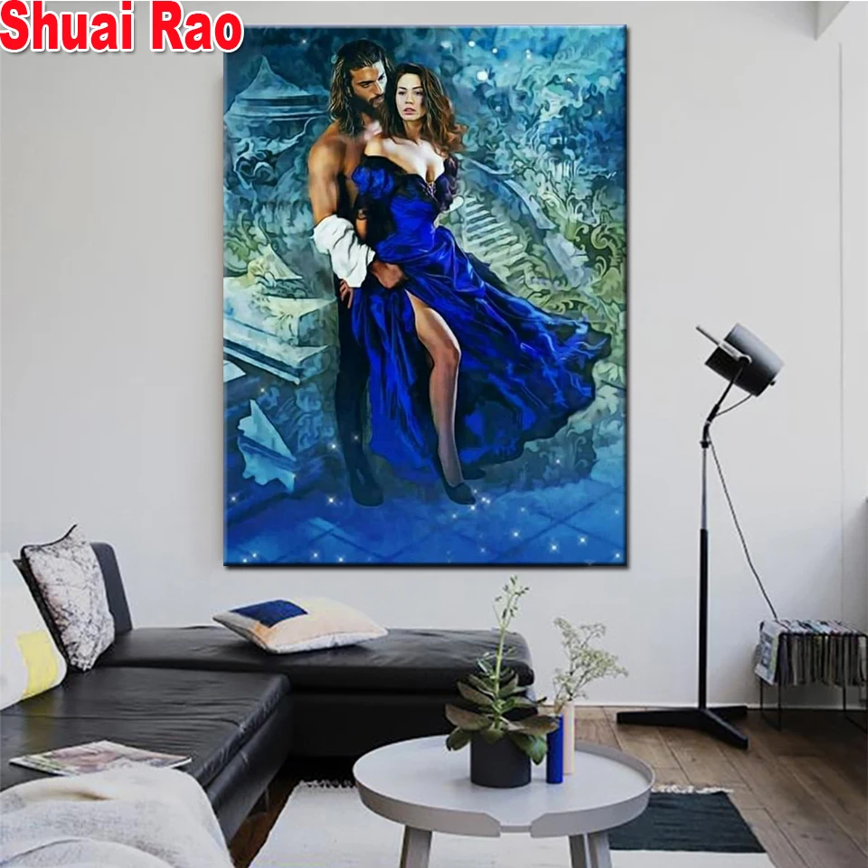 Полностью квадратная круглая 5d алмазная вышивка синяя любовь алмазная живопись Интимная пара DIY Алмазная мозаика набор в подарок,