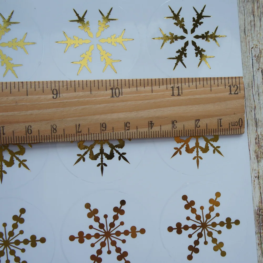 Наклейки рождественские в виде снежинок, золотые, 120 шт. (10 листов бумаги)