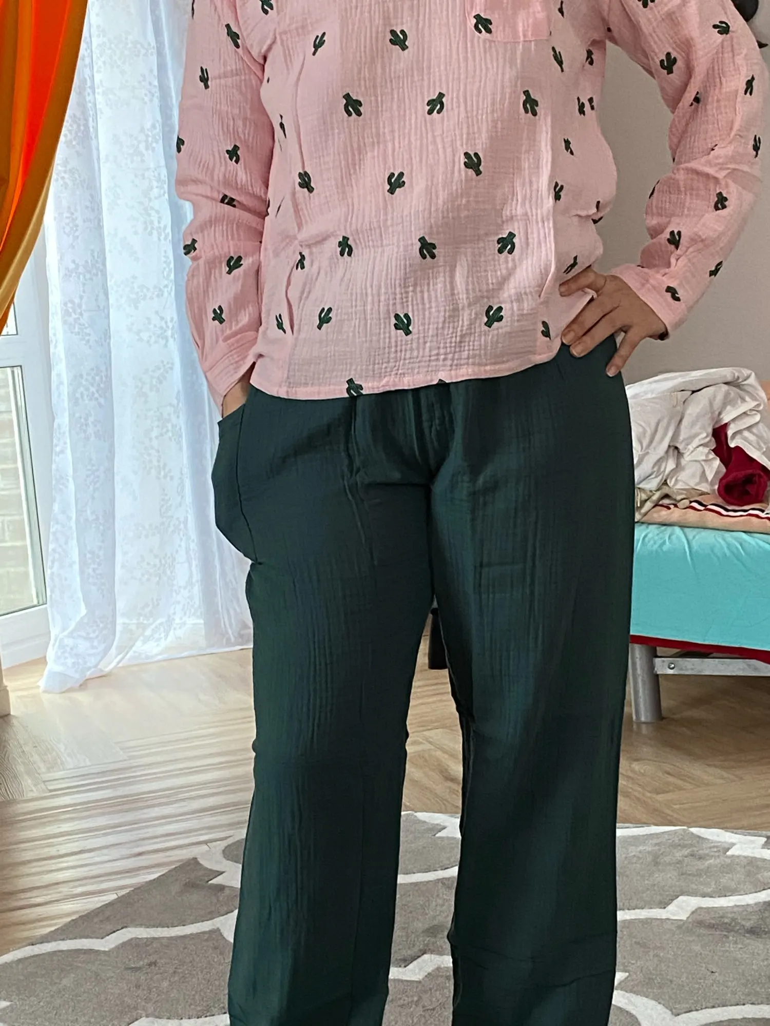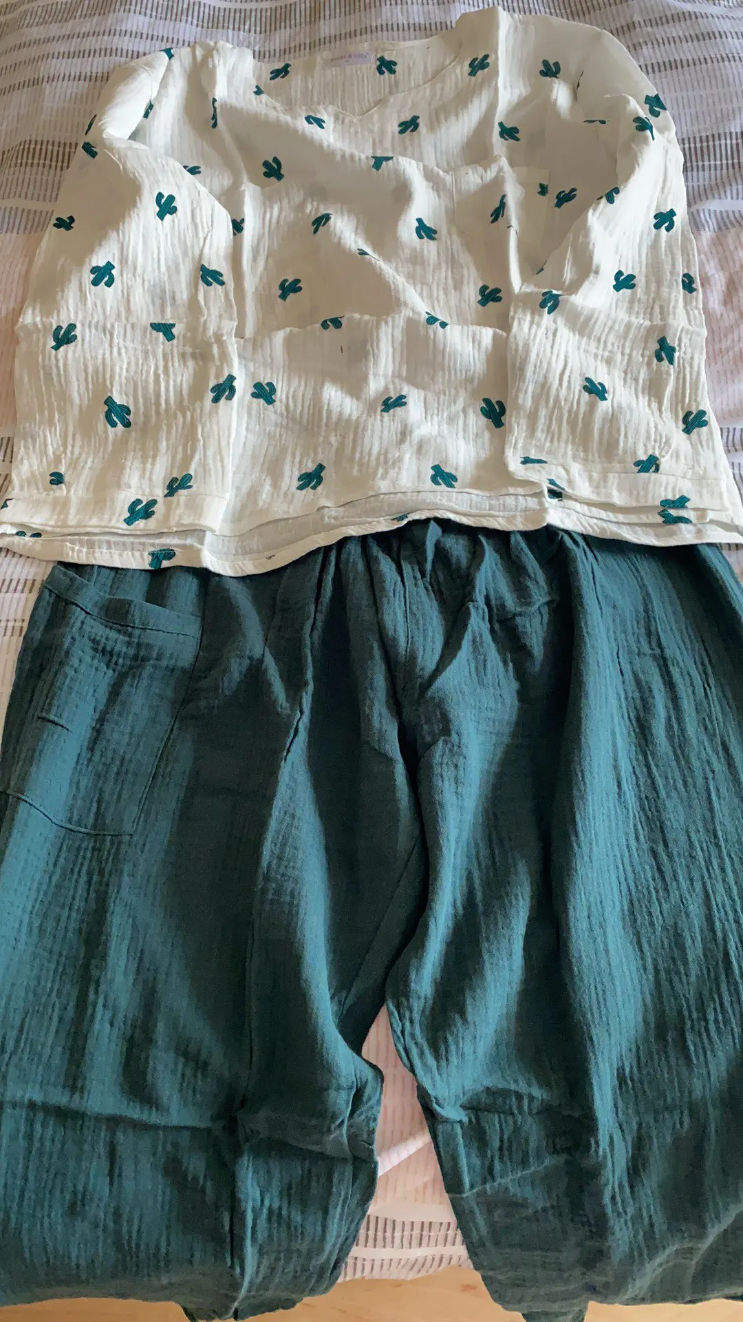 Пижама женская хлопковая, с длинным рукавом, в японском стиле