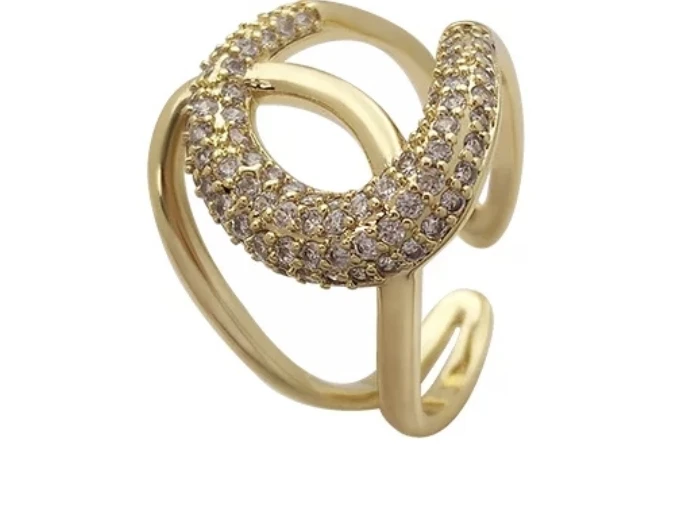 Открытые Кольца в форме двойной волны с цирконием для женщин, дизай...