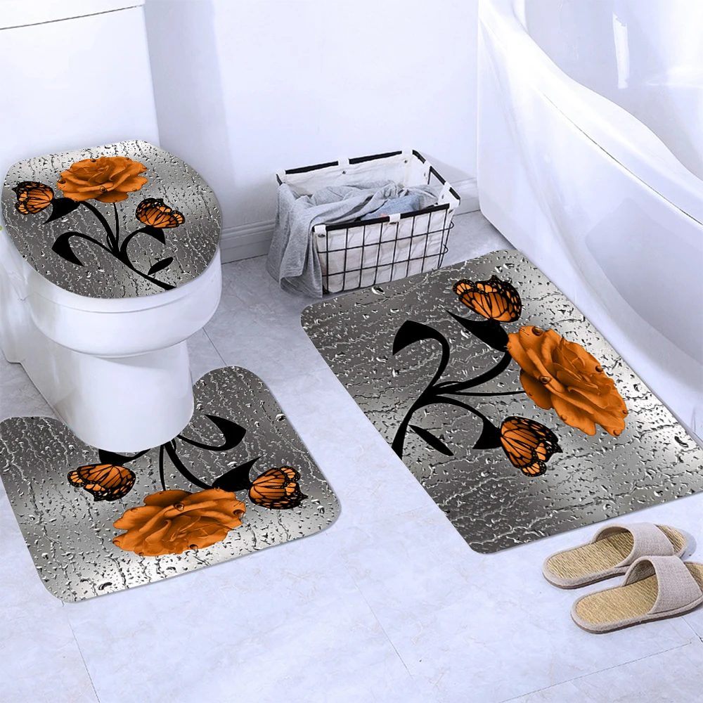 Оранжевый с цветочным узором из роз, с рисунками снеговой бабы Нескользящие Коврики для туалета крышка коврик занавесок для душа для ванны коврики для дома украшения