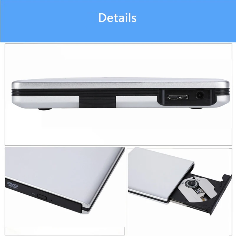 Внешний Привод Blu-Ray с USB 3,0, DVD-плееров, 3D тонкий оптический привод, устройство для чтения Blu-ray, устройство для чтения CDDVD-дисков для WindowsIOS