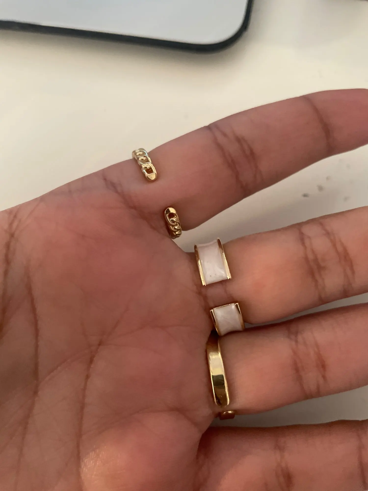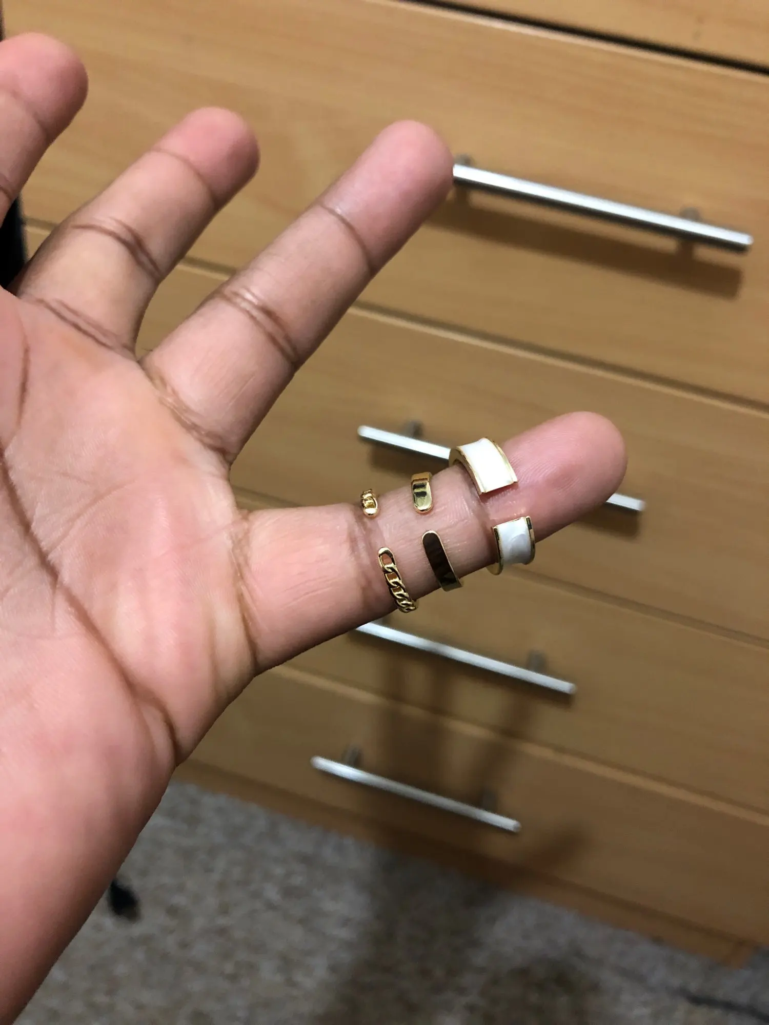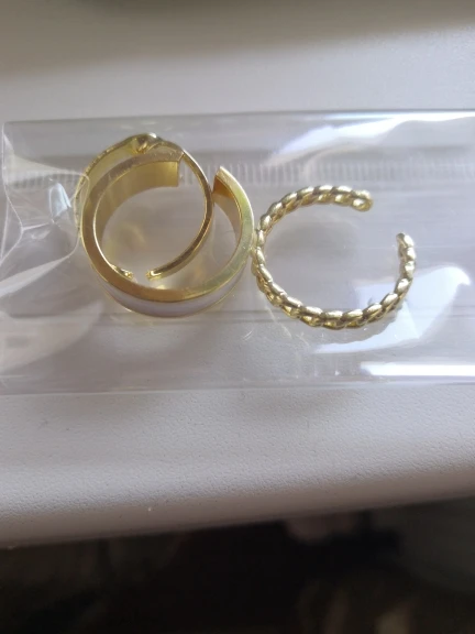 Прекрасный набор колечек, качество хорошее, дизайн полностью соответствует картинке. Цвет металла яркий и больше жёлтый, размер регулируется.