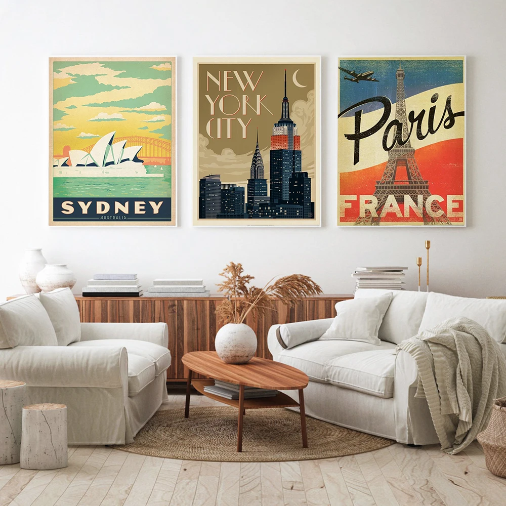 Винтажный постер в скандинавском стиле для путешествий, города, Нью-Йорк, Париж, Лондон, Сидней, Флоренция, пейзаж, Художественная Картина на холсте, настенные картины, домашний декор