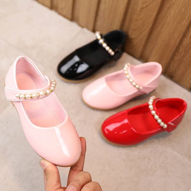 Обувь для маленьких девочек, детская обувь принцессы с мягкой подошвой и жемчугом, детская обувь для девочек, кожаная обувь для маленьких девочек, черные, красные, розовые, 2, 3, 4-12