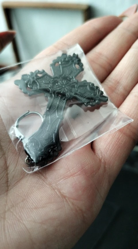 Товар пришел быстро, аккуратно упакован, крестик красивый как на фотографиях, тыльная сторона без особых дефектов ровная, но при всем этом оказалась сломана застёжка она просто не держится а болтается видимо она была придавлена или зажата ибо также с застёжки облазит краска. В целом крестик аккуратный и красивый, вот только застёжка подвела.