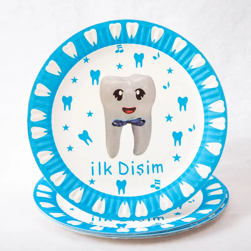 Одноразовая посуда для детей на первый зуб, салфетки с рисунком зуб...