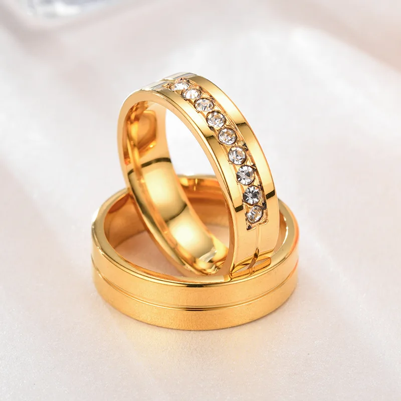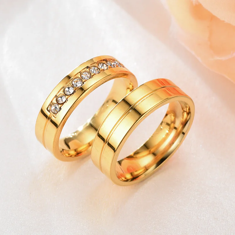 Материал изделия: нержавеющая сталь Стиль изделия: парные кольца для возлюбленной Цвет изделия: золотой Процесс: полировка, точная резьба Вес: мужские модели 8 мм-6 г; Женские модели 8 мм-5g Стиль: Модный Упаковка: независимая упаковка (этикетка одного размера, отдельный мешок OPP) Ширина: мужские модели 8 мм-женские модели 8 мм Толщина изделия: 2 мм