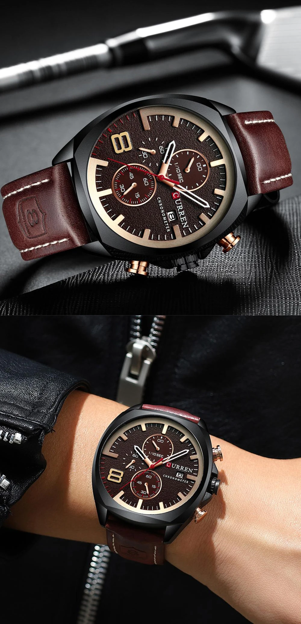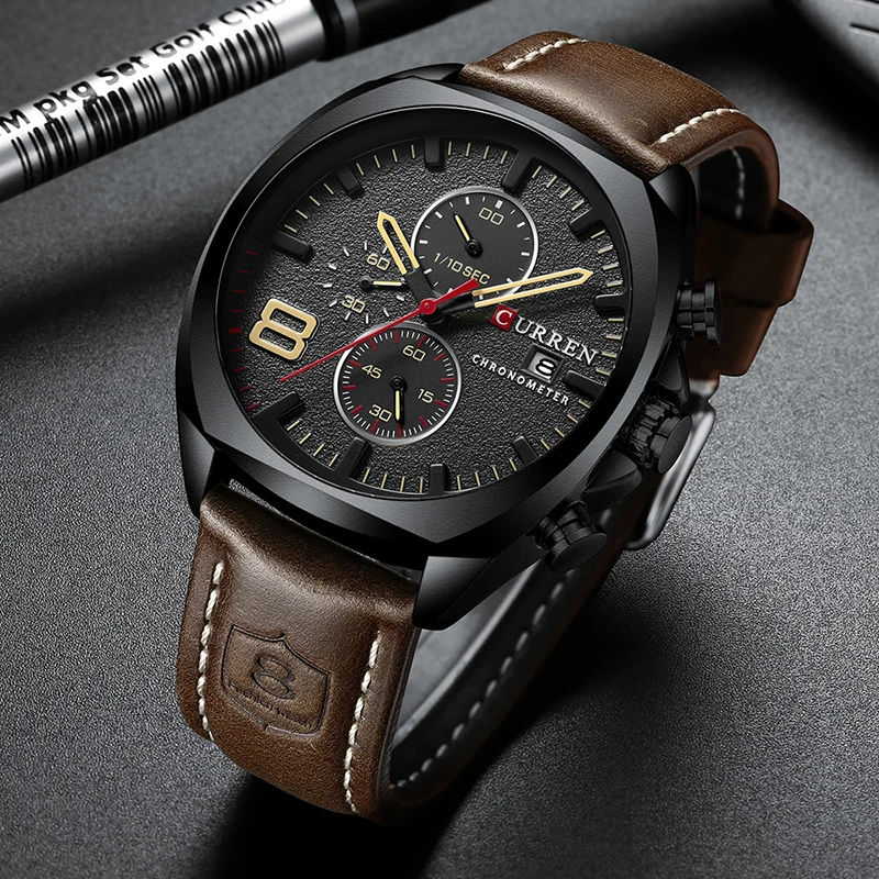 Часы наручные CURREN Мужские Аналоговые, брендовые Роскошные Кварцевые спортивные водонепроницаемые в стиле милитари, 30 м
