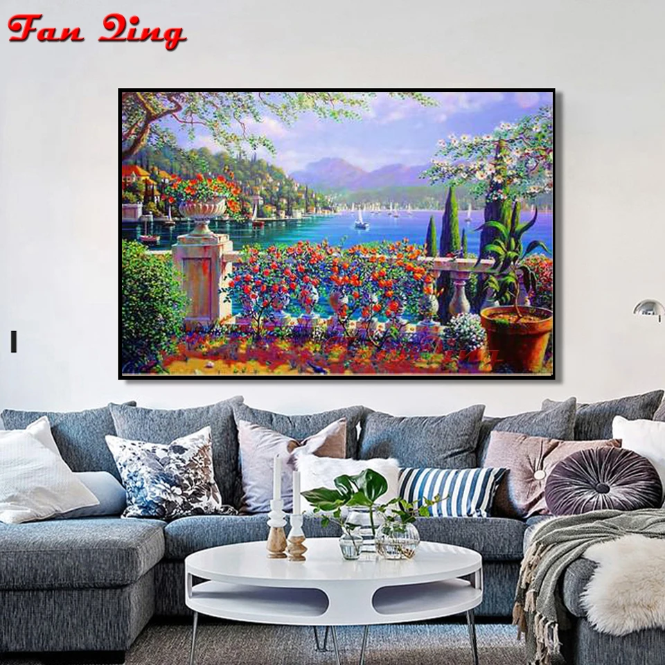 Diy 5d алмазная картина пляжный дом пейзаж для балкона Вышивка крестом квадратная круглая Алмазная вышивка ручная работа Стразы искусство