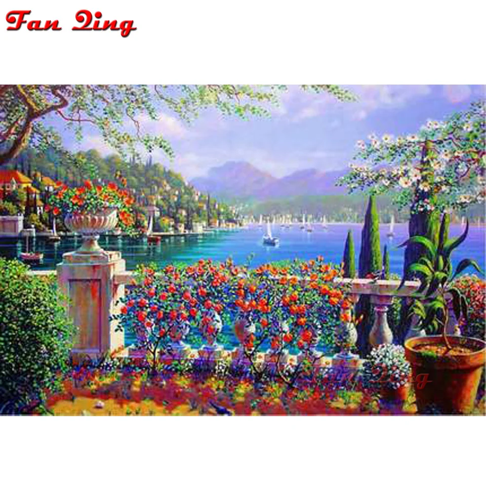 5D DIY Алмазная вышивка идиллический Пейзаж Цветы Алмазная картина ...