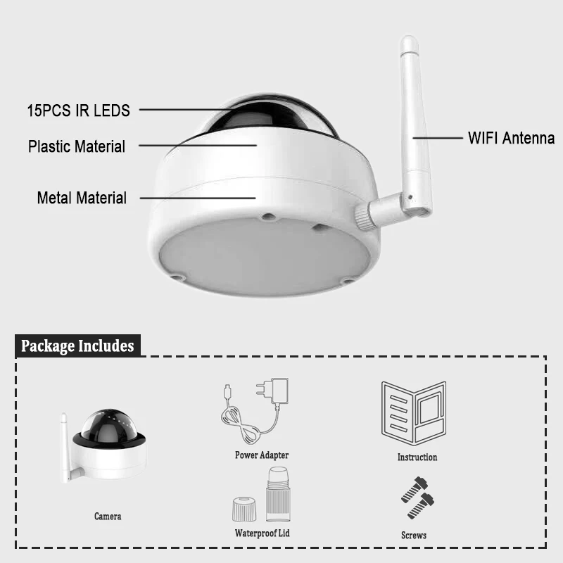 Купольная IP-камера HJT 5 Мп2 МП, Водонепроницаемая беспроводная камера видеонаблюдения с функцией ночного видения и сверхнизким освещением, с функцией обнаружения движения, с TF-картой