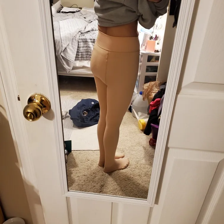 Они точно такие же, как описано, колготки телесного цвета с теплой подкладкой. Я бы посоветовал наслоить их, если там очень холодно, где вы находитесь, я в Канаде, поэтому я ношу под ними другую пару колготок. Они выглядят очень естественно издалека. Только с нижней стороны нет других оттенков для разных тонов кожи. Я бы купил их снова