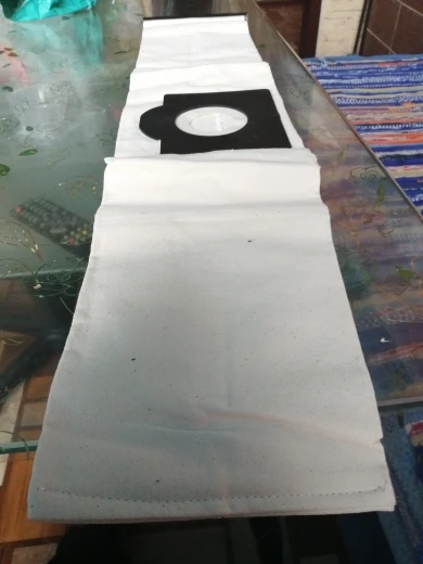 нормальный мешок, строительную пыль почти не пропускает. Лучше чем серые мешки. Очень туго и плотно надевается пластиковый зажим.