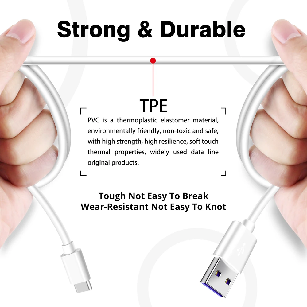 Кабель USB Type-C, 5 А, для Huawei P30 Mate 30 P40 P10 Pro, Samsung...