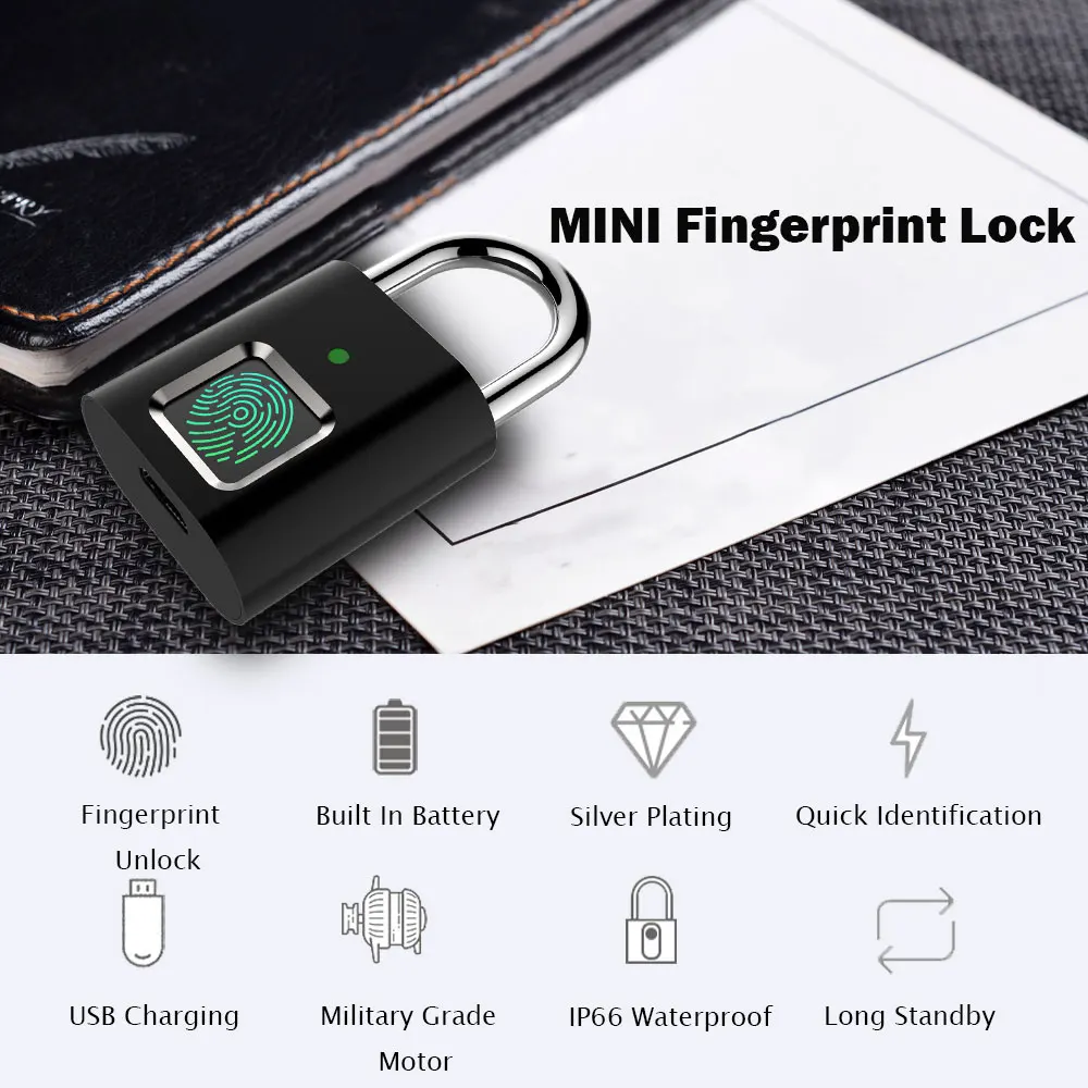 Замок для отпечатков пальцев USB Перезаряжаемый Водонепроницаемый умный замок для отпечатков пальцев Противоугонный Электрический дверной замок для чемодана чехол сумка