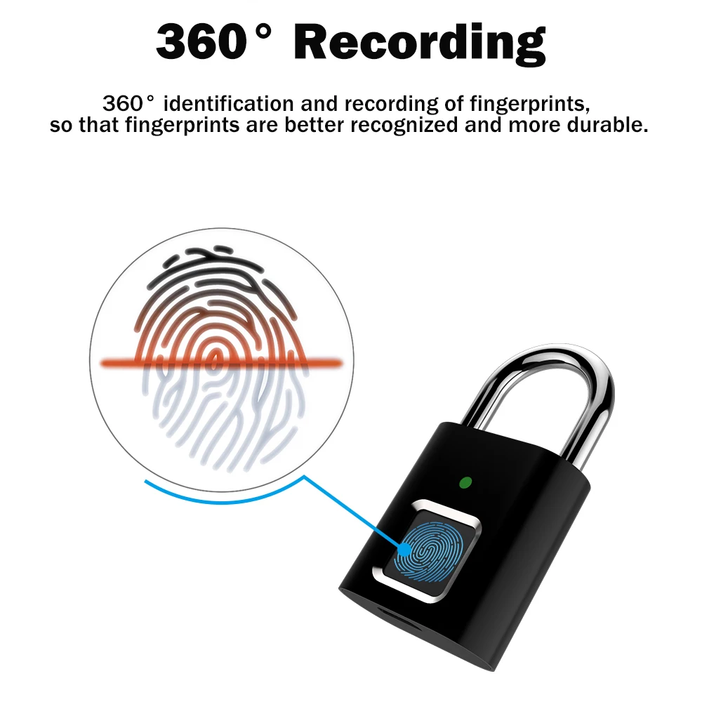 Описание:** Широкое применение: идеально подходит дляШкафы, рюкзаки, шкафчики для хранения и т. д.** 10 групп отпечатков пальцев: навесной замокЗапись до 10 отпечатков пальцев.
