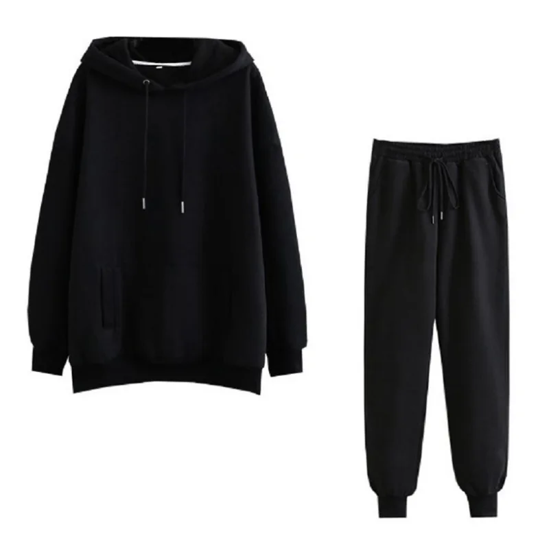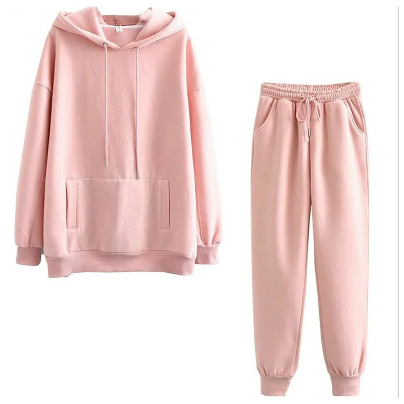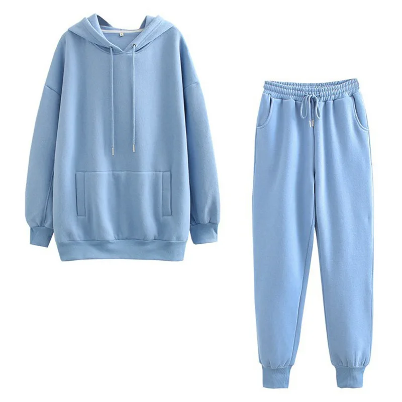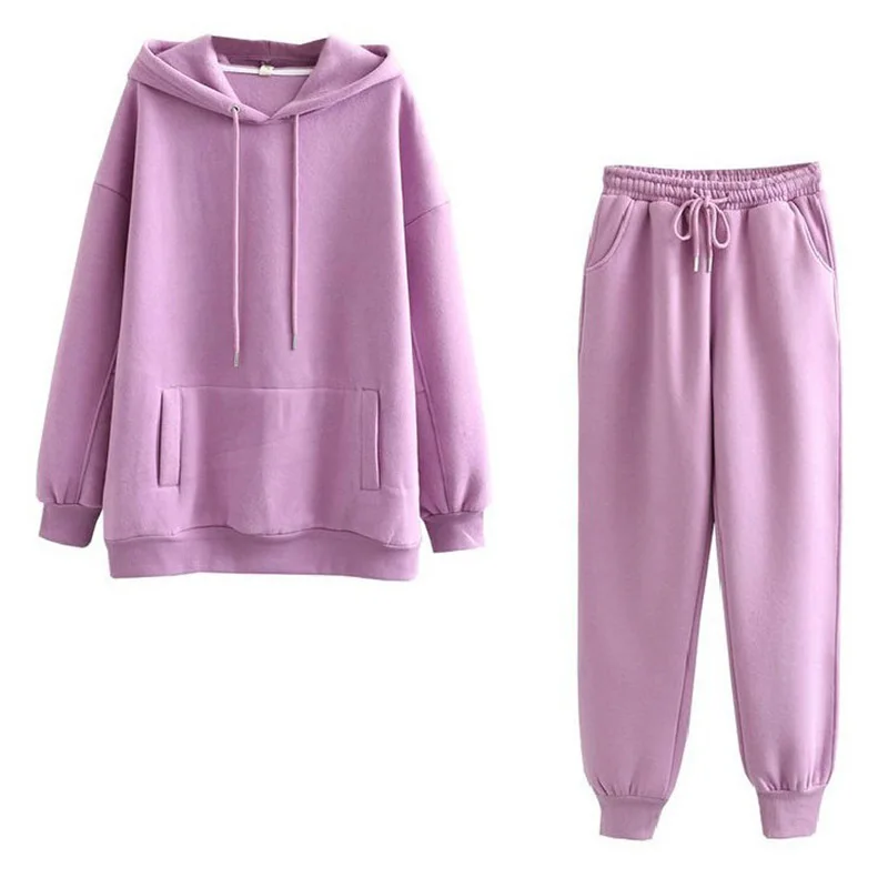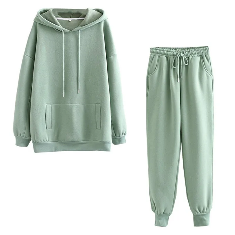 Женский спортивный костюм из 2 предметов, повседневный однотонный спортивный костюм большого размера, теплые толстовки и штаны, Осень-зима 2021