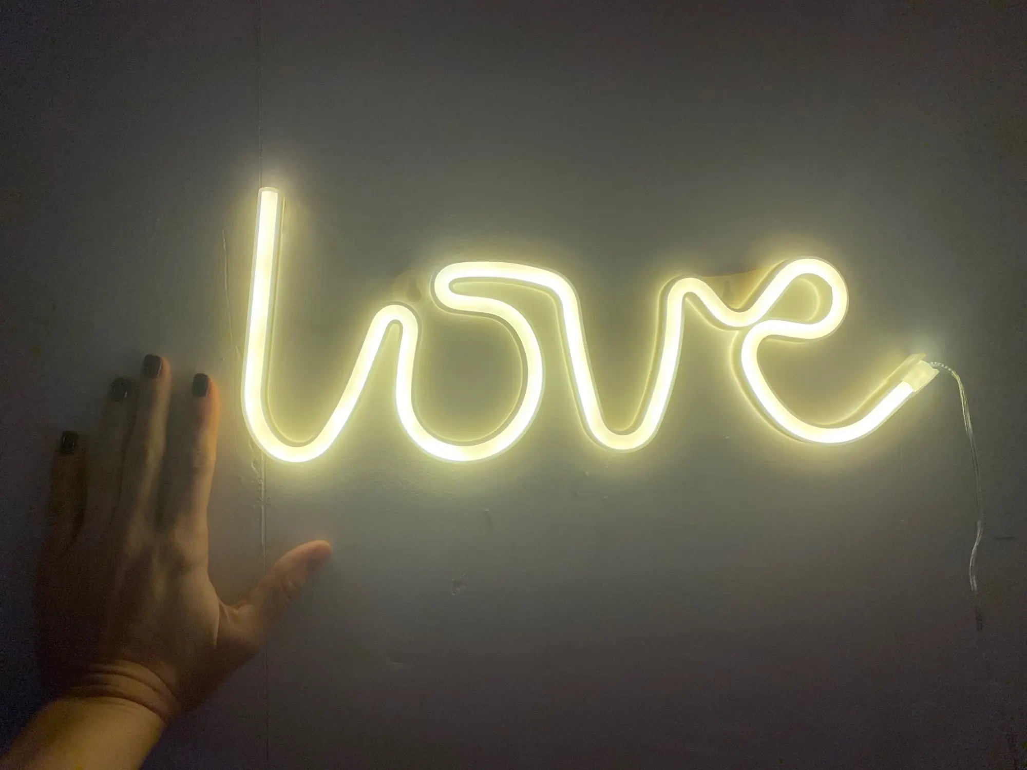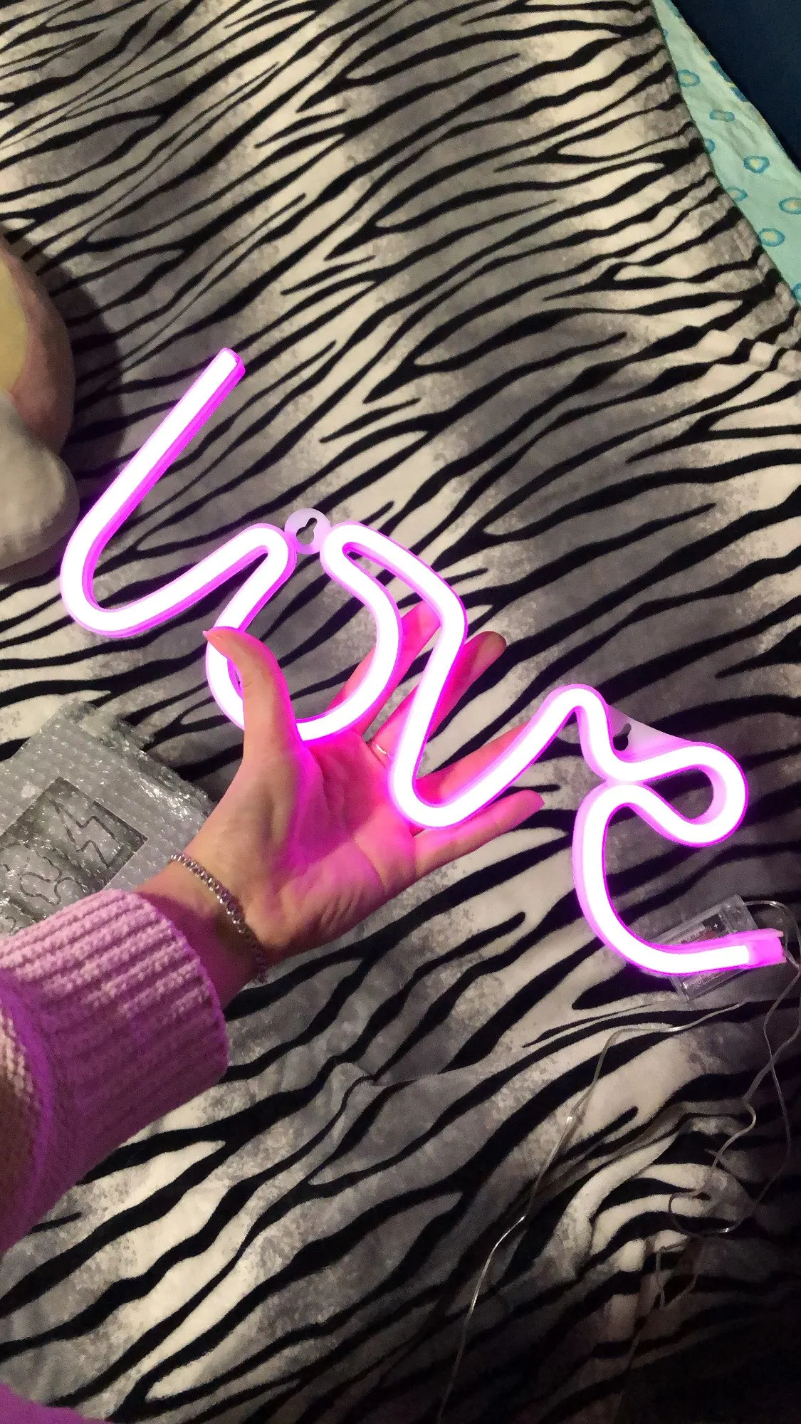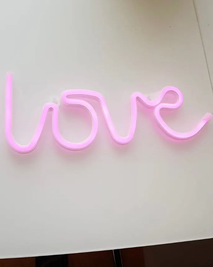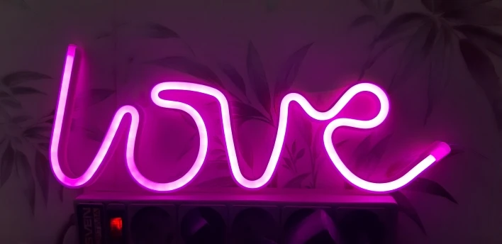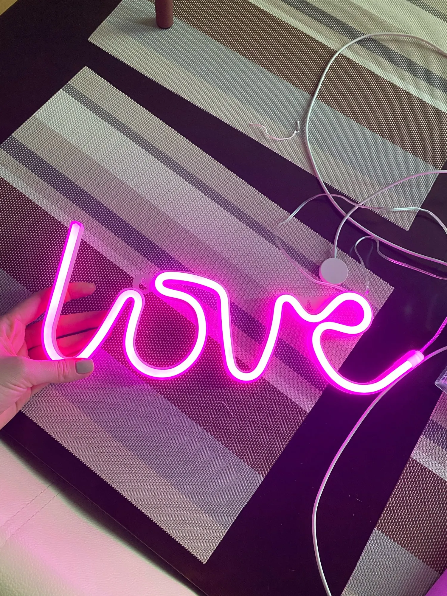 Очень красивый и достаточно яркий светильник, рекомендую! Выбрала надпись love розового цвета, это очень красиво