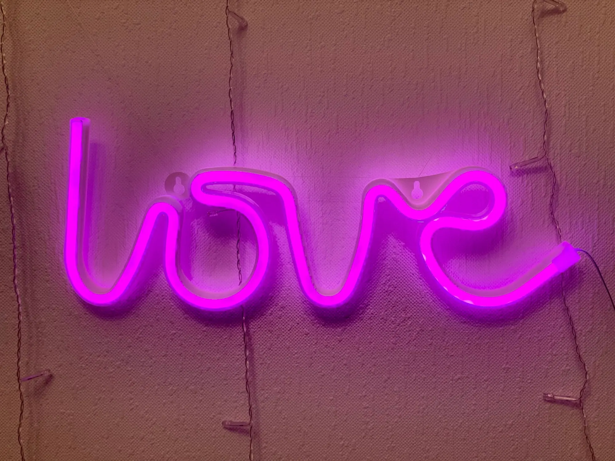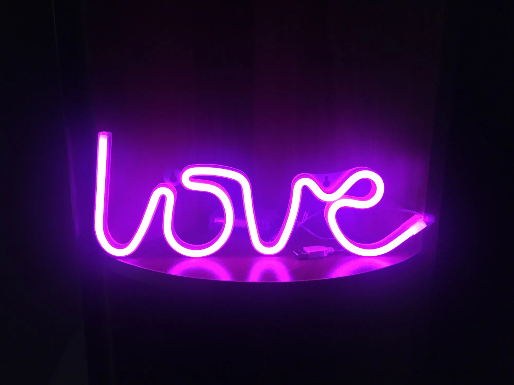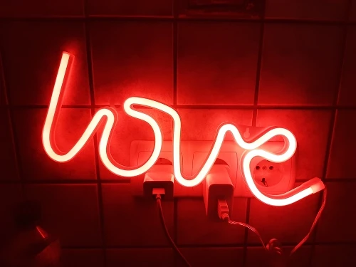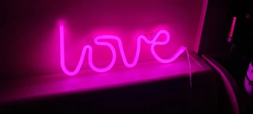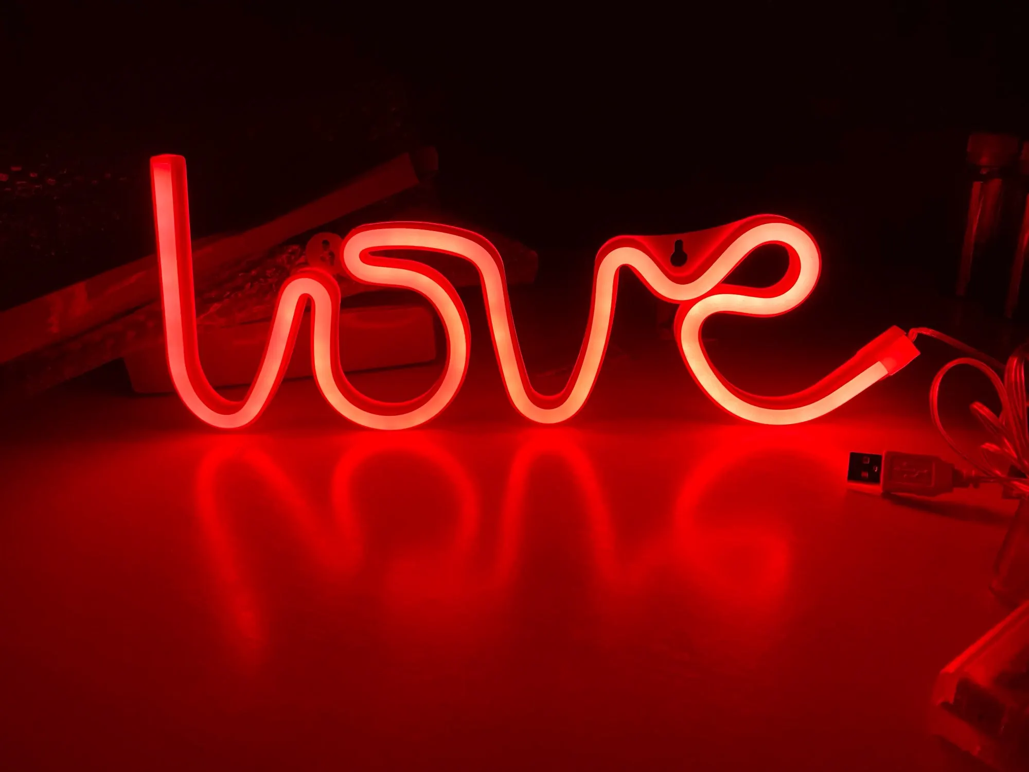 Очень красивый и достаточно яркий светильник, рекомендую! Выбрала надпись love розового цвета, это очень красиво