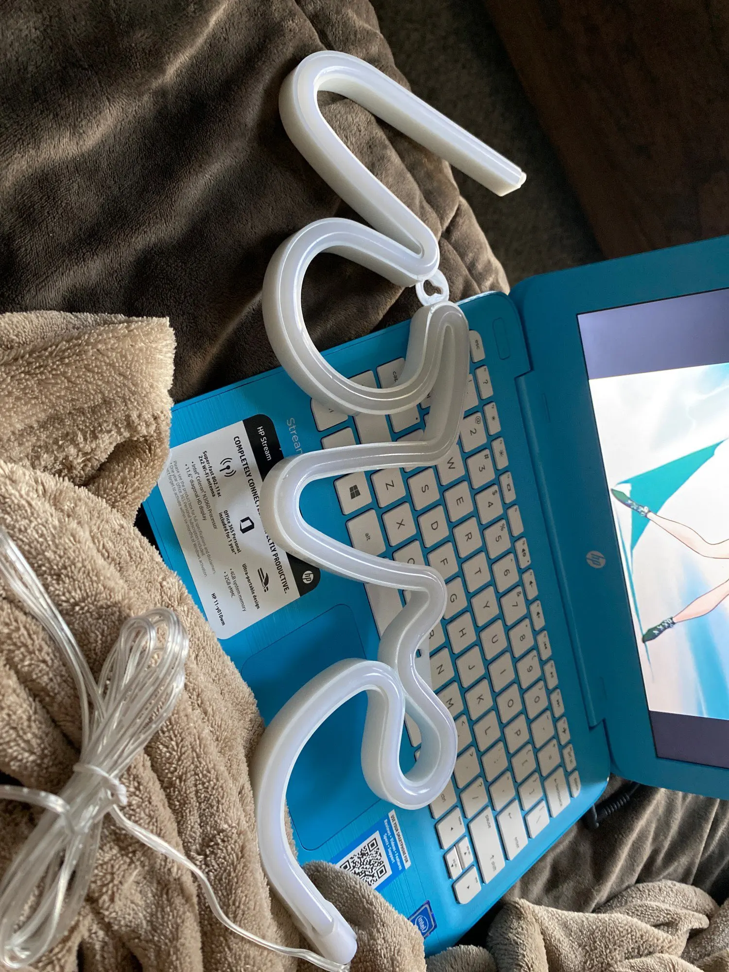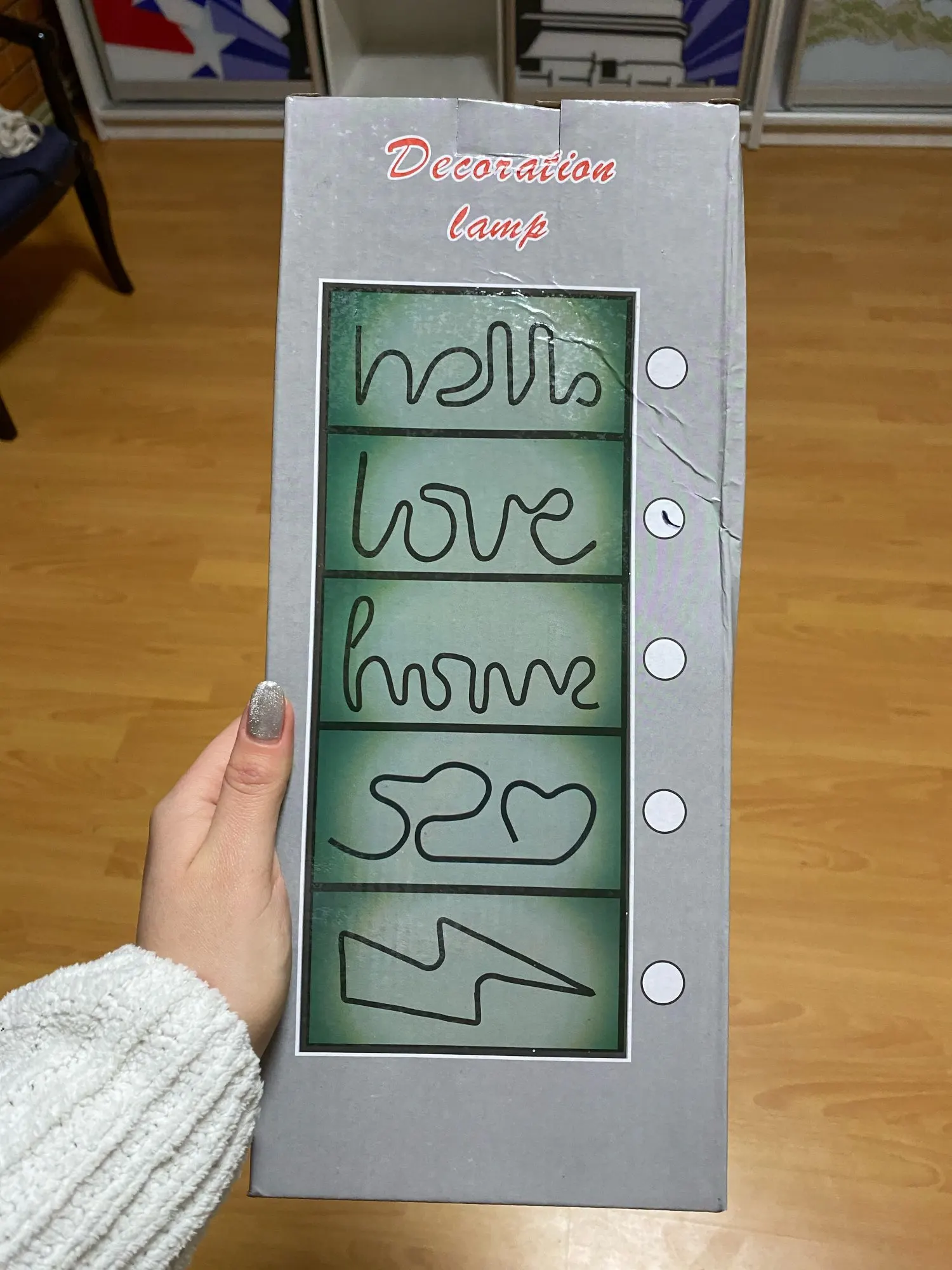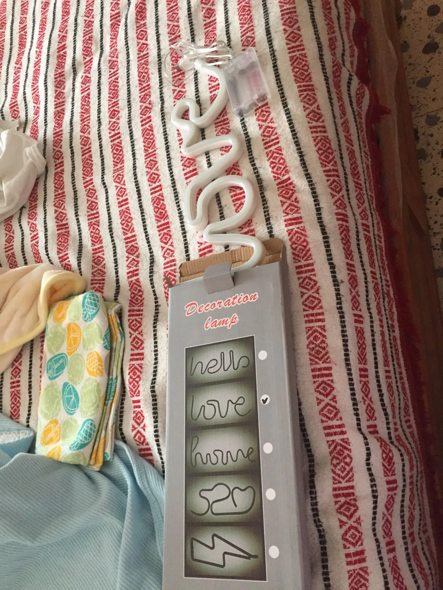 Невероятно потрясающая и красивая неоновая надпись, всю комнату освещает розовый свет. Пока что просто лежит и светиться, позже прикреплю на стену, работает либо от трёх батареек, либо от розетки с Блоком питания, что удобно, если нет батареек. Посылка шла около трёх-четырёх недель, так что пришлось подождать. Спасибо огромное за такую красивую, эстетическую вещь, неоновая подсветка - один из самых атмосферных элементов декора)