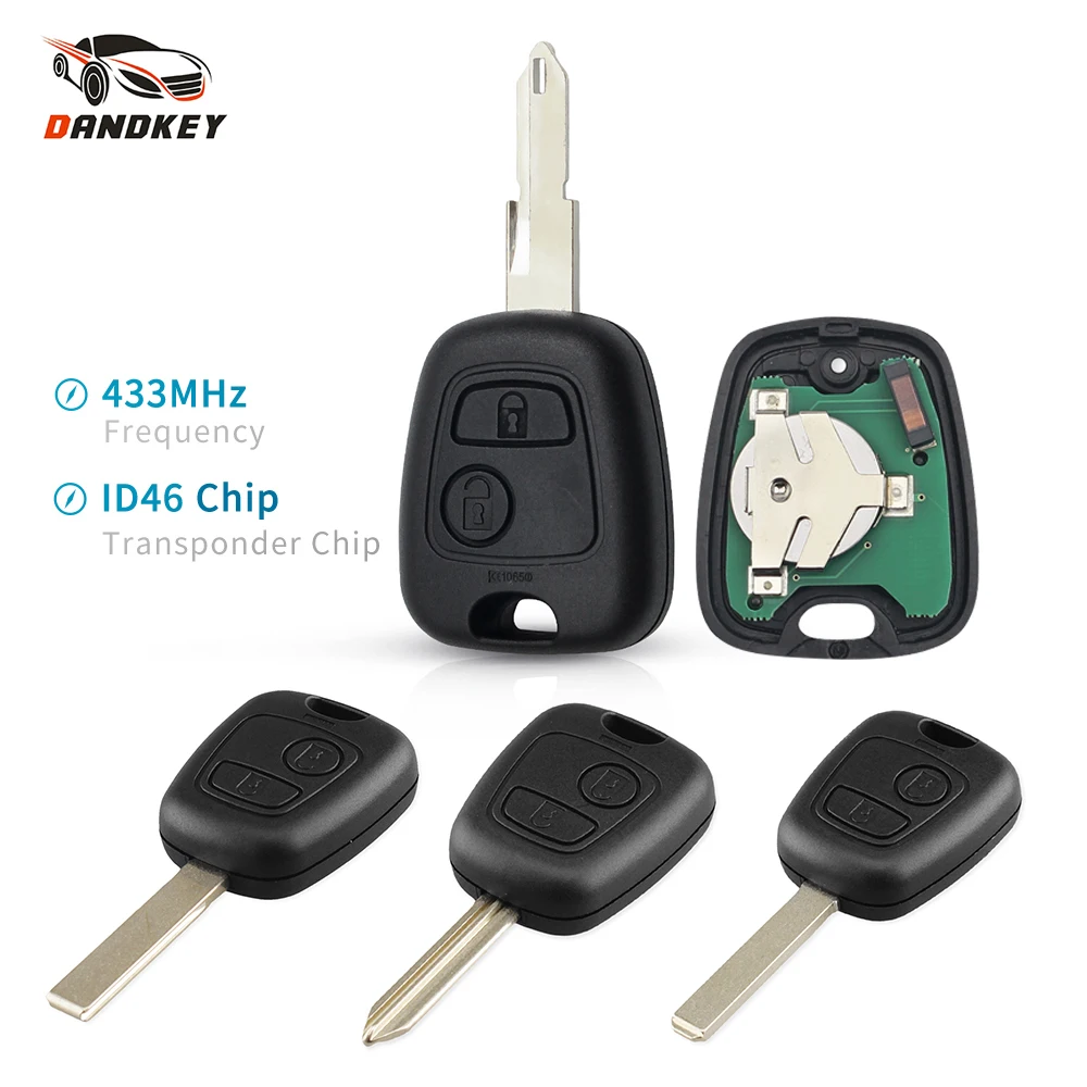 Автомобильный ключ Dandkey с дистанционным управлением, 433 МГц, чип ID46 для Citroen Saxo Picasso Xsara Berlingo, для Peugeot, 2 кнопочный ключ, брелок с необработанным лезвием