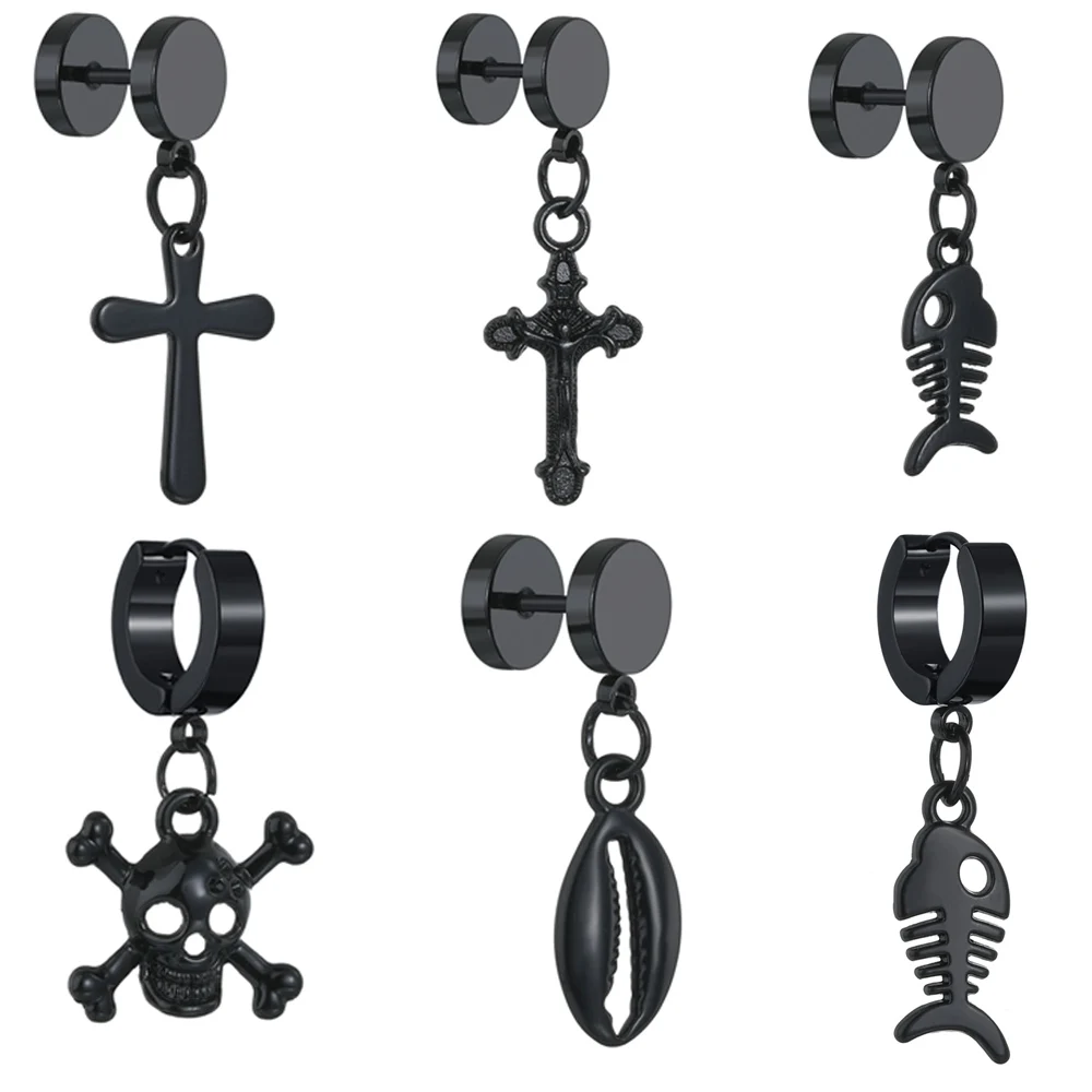 1. Наименование:Черные серьги-гвоздики из нержавеющей/титановой стали разных стилей в стиле панк для мужчин и женщин, готические уличные хип-хоп ювелирные изделия для ушей