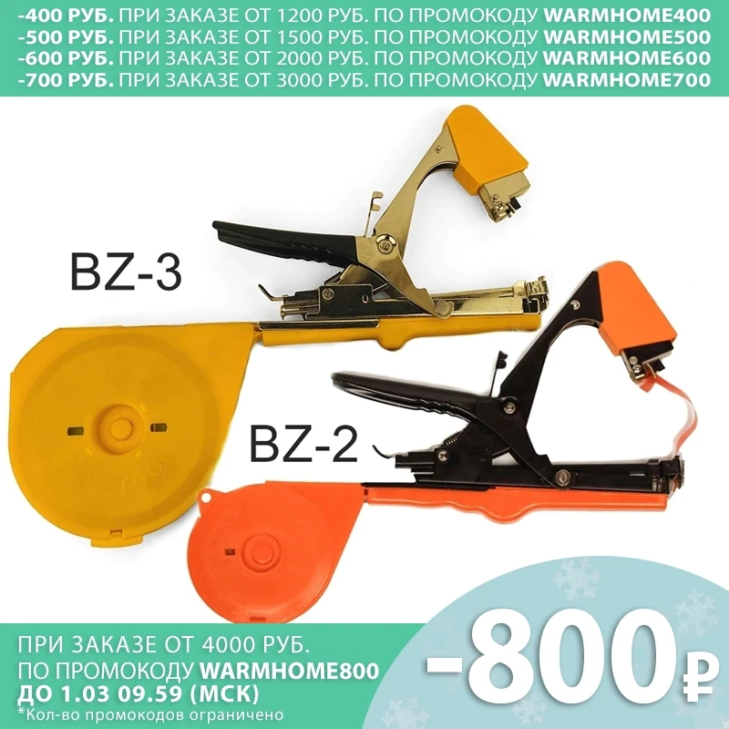 В Tapetool bz-3можно вставить ленту до 90 метров. Это позволяет делать более 1500 подвязок, заряжая в степлер только скобы. Нужно понимать, что в след за увеличением длины ленты увеличился и вес инструмента на 100-150 гр. и габариты магазина куда заряжается ленты.В модели bz-2 внешний диаметр магазина для ленты составляет 8-9 см а в модели bz-3 12-13 см.
