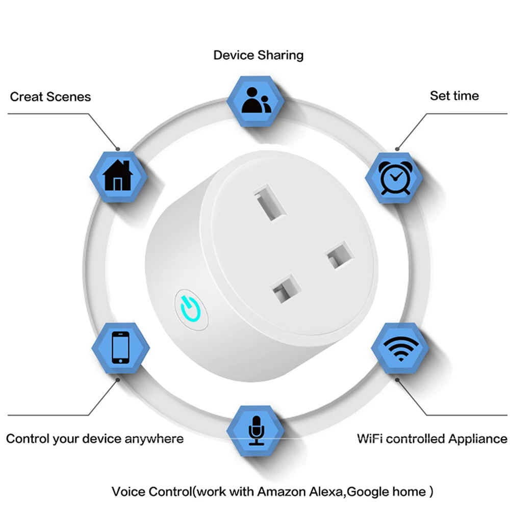 Розетка для умного дома, беспроводная, Wi-Fi, голосовое управление, поддержка Alexa Google Home