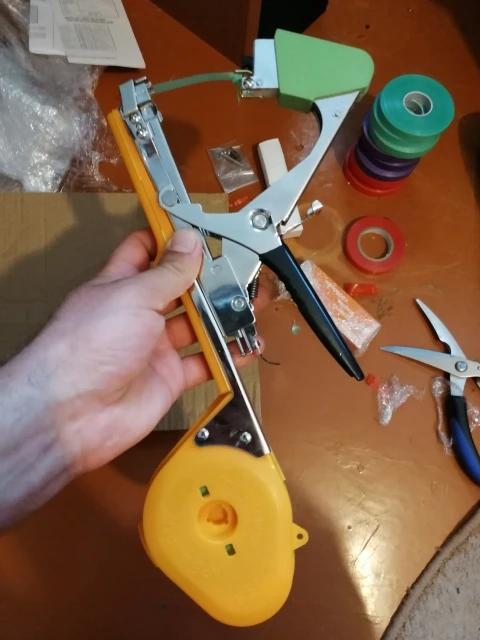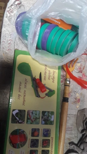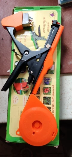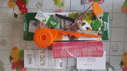 Очень хорошая вещь! Благодаря ей экономится время на подвязке саженцев: вместо 10 мин на один выходит 20 секунд. Отличная штука!