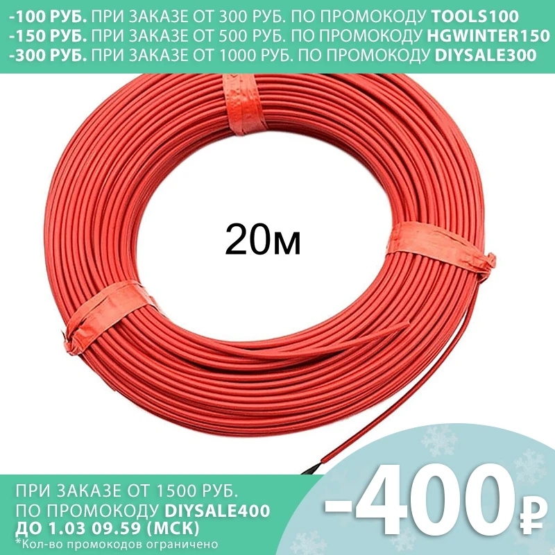 Нагревательный кабель 66 Ом 20 метров 2 мм, инкубатор температура, нагревательный элемент, домашний инкубатор